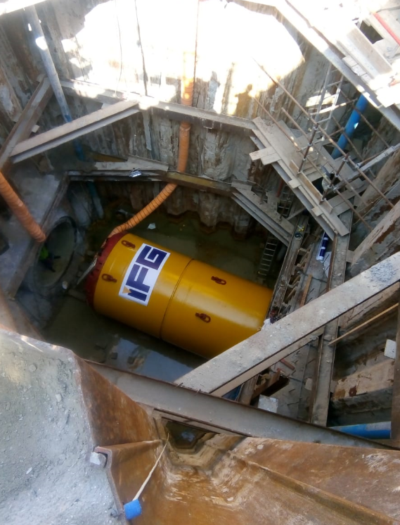Eine AVN-Maschine (AVND2400AB, Ø 3.025 mm) meisterte die Herausforderung von drei Haltungen von jeweils 610, 765 und 825 Metern im Rohrvortrieb unter dem Rollfeld. Entstanden ist so ein neuer Entwässerungstunnel mit einer Gesamtlänge von 2.200 Metern, der die Abwasserkapazität des Flughafens erhöht. In Tiefen zwischen 13 und 15 Metern unterquerte die Mikromaschine die Rollbahnen des Terminals 2. Der Flugbetrieb am Boden wie im Luftraum lief dabei störungsfrei und sicher weiter. Auf der längsten Haltung ging es in weichen Böden mit Sandstein und Schluffstein pro Tag durchschnittlich 15 Meter voran. Exakt auf Kurs blieb der Vortrieb auf Grund der präzisen Prozess- und Steuerungstechnik von VMT.