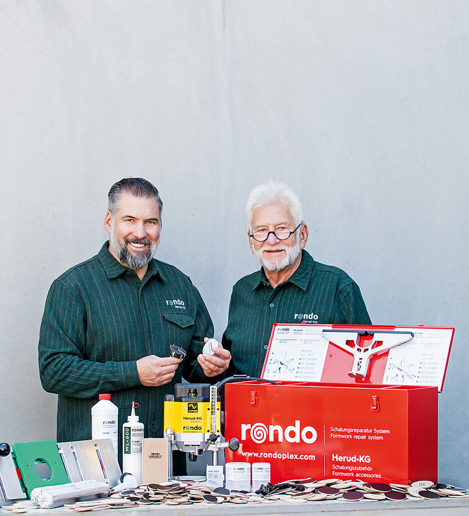 Adrian Heruds Vater Werner-F. ist Ideengeber der ersten Stunde und »ein Vollprofi der Schalungsbranche seit mehr als 40 Jahren«. Kunden hätten schon damals eine Lösung zur Reparatur bereits benutzter Schalungen gefordert. »Als Vertriebsleiter für Schalungen bei Großprojekten im Hoch- und Tiefbau wusste er genau, welche Anforderungen an das Material gestellt werden und was nach dem Verschalen auf der Baustelle benötigt wird – ein einfaches und komplettes Reparatursystem. Die Idee der Rondobox war geboren«, berichtet Adrian Herud. Die Vorteile des Reparatursystems können noch heute punkten.