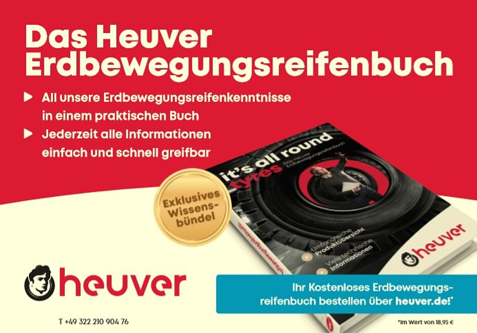 Nach dem Landwirtschaftsreifenbuch 2018 hat Heuver nun auch ein Erdbewegungsreifenbuch entwickelt – das ultimative Nachschlagewerk für dieses spezielle Segment. Als größter europäischer Anbieter im Bereich Erdbewegungsreifen möchte Heuver sein Wissen gern mit seinen Kunden teilen. Das passt auch perfekt zu dem Fullservice-Konzept, das Heuver erstellt hat. Viele Kunden haben das Buch bereits persönlich oder per Post erhalten. Sie haben also alle Informationen über Erdbewegungsreifen und -Felgen in einem praktischen und handlichen Handbuch auf dem Schreibtisch liegen und können ihre Kunden ab sofort immer schnell und kompetent beraten. Dass Nachhaltigkeit auch für Heuver ein wichtiges Thema ist, zeigt sich auch hier. Das Handbuch wurde nämlich CO2-neutral produziert und auf FSC-zertifiziertem Papier gedruckt.