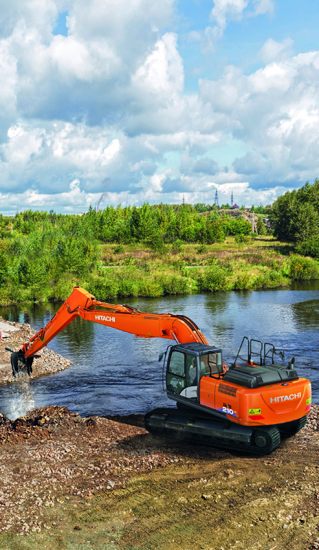 Der ZX210LC-6 SLF als neuer Super-Longfront-Bagger ist als Maschine für die Instandhaltung von Flüssen und Seen sowie für Böschungsarbeiten und den Landschaftsbau konzipiert. Als eines der kleineren Modelle dieser Baureihe hat er eine maximale Grabreichweite von 15 m. Charakteristisch für die Neuheit sind eine außerordentliche Stabilität und Sicherheit sowie ein ruckfreier Betrieb. Er kann Erde aus 11 m Tiefe holen und Lkw zum Abtransport des Materials von der Baustelle effizient beladen.