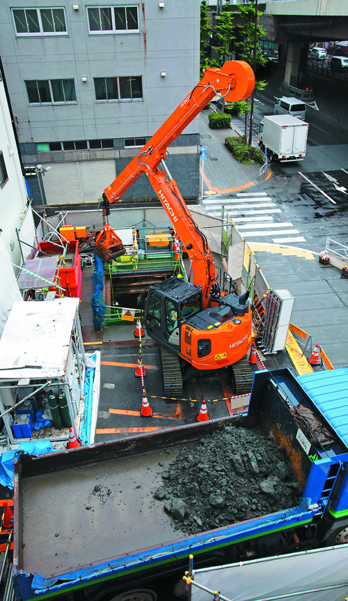 Der ZX135US-6 ist der kleinste Teleskopstiel-Bagger von Hitachi und als eine optimale Lösung für den Tiefbau auf engen Baustellen im urbanen Raum konzipiert. Der 78,5 kW starke und 16,5 t schwere ZX135US-6 benötigt weniger als die Hälfte des Platzes des größten Modells der Reihe, des ZX350LC-6. Zu seinen technischen Spezifikationen zählt ein Zweischalengreifer mit 0,25 m³ Volumen (ISO gehäuft) und eine Löffel-Losbrechkraft von 38 kN. Er kann bis zu einer Tiefe von 16,5 m graben. Sein Teleskopstiel lässt sich schnell ein- und ausfahren. Die Absturzsicherung vor dem Kabinenfenster und die optionale Zoomkamera am Ende des Teleskopstiels erhöhen die Sicherheit. Über einen Monitor in der Kabine können der Blickwinkel eingestellt und das Bild vergrößert wie auch verkleinert werden.