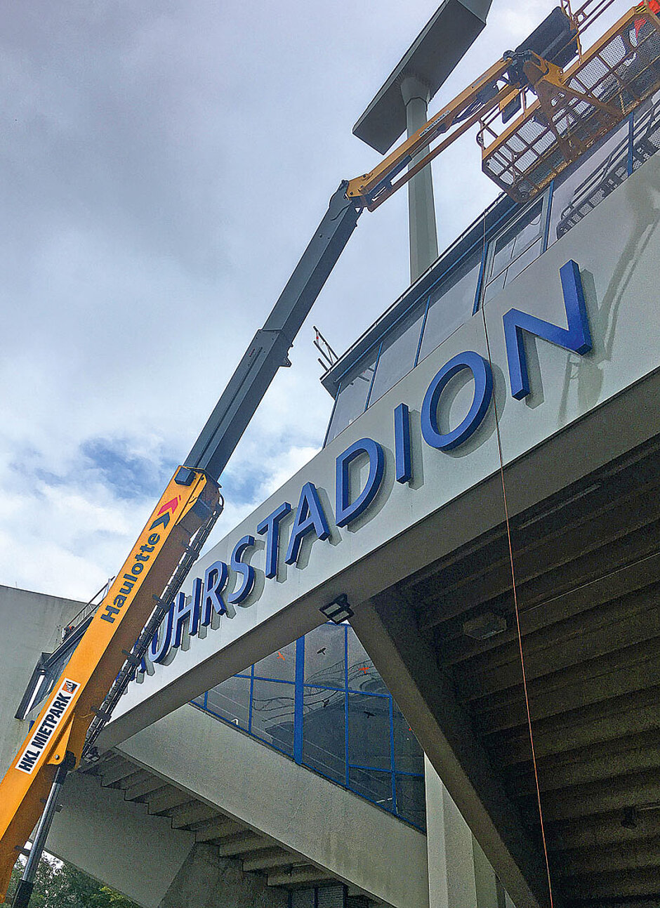 Als Spezialist für Bedachungen übernahm die Firma Wüstrich die Arbeiten in luftiger Höhe: die Erneuerung der Dachrinnen auf einer Länge von 500 m in 16 m Höhe. Weil es keinen Zugang von Gebäudeseite gab, entwickelte sich die Aufgabe zu einem Einsatzfall für eine Teleskopbühne. Gemeinsam mit einem HKL-Kundenberater wurde das Haulotte-Modell HT23 RTJ O für die Arbeiten ausgewählt. Die Teleskopbühne wusste mit hoher Reichweite und festem Stand zu überzeugen.