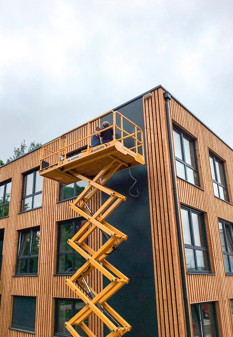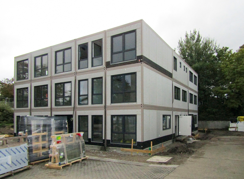 Nach dreimonatiger Montage entstand ein modernes Gebäude aus 42 Raummodulen mit einer Gesamtfläche von rund 810 m² mit Heizungsanlage, innen liegenden Treppen und Fluren, zwei Eingängen, Konferenzräumen, Büros, hochwertigen Sanitäranlagen und einer ausgestatteten Küche. Nachfolgend wurde die Fassade der Containeranlage von HKL mit einer Holzverkleidung veredelt. Abschließend erfolgte unter Einsatz einer Haulotte-Arbeitsbühne aus dem HKL-Mietpark die Montage des LAT Firmenlogos.