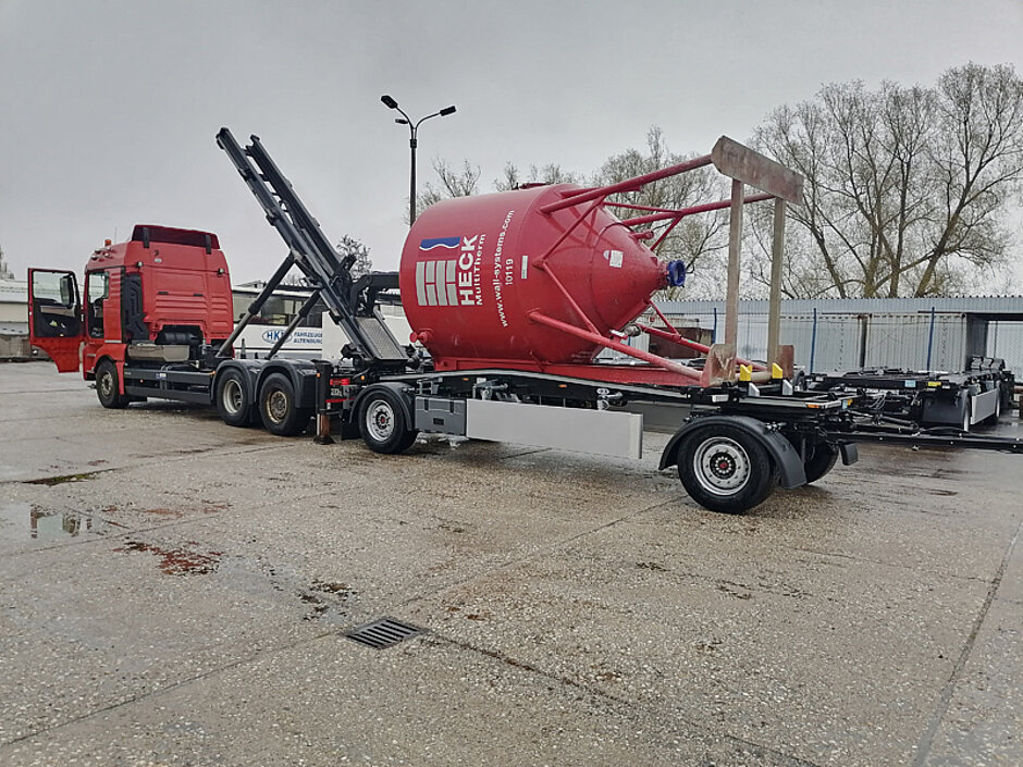 Der BTA mit dem HKM-Schlittenrahmenkonzept macht bei uns alles – vom schnellen Tages-Job in der Region bis zur Fernstrecke kommt der HKM-Schlittenanhänger zum Einsatz«, erklärt Albert Wildenauer. Entscheidend dafür sei, dass beim Arbeiten mit den unterschiedlichen Längsträgern das von HKM entwickelte pneumatische Klemmsystem universell einsetzbar ist. So könnten in einem System sowohl die I-Träger der normalen DIN-Abroller, aber auch die Längsträger mit Rundrohr bei den Silobehältern praktisch geklemmt und sicher verriegelt werden.