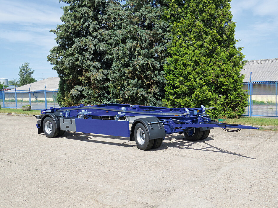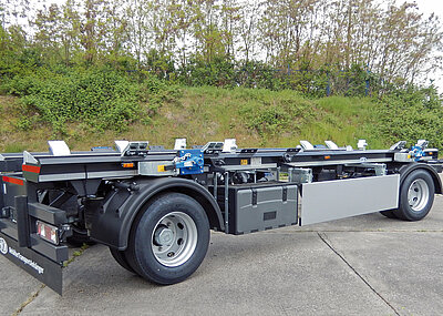 Der HKM-Schlittenanhänger mit Deltaprofillängsrahmen wird um neue Merkmale ergänzt: So verfügt der Schlittenanhänger über ein konstruktiv optimiertes Aufnahmeprofil für DIN-Abroller und Müllpressen. Das Heckrahmenprofil will den Fahrern zudem auch eine bessere Übersicht bieten.
