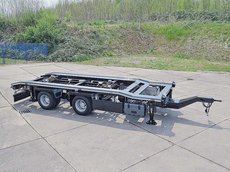 Die EU-Richtlinie ECE-R58.03 für den Unterfahrschutz wird erfüllt. Auch hier sei es laut Hersteller gelungen, das Gewicht zu reduzieren und das Rahmenheck im Design neu zu gestalten. Damit hat HKM jetzt ein durchgängiges Produktleitbild in der Heckansicht. Die Ladungssicherung erfolgt über die vierfach versetzte pneumatische HKM-Klemmung. Je nach Einsatz und gewünschter Abrollergröße steht die Baureihe in Einzel- und Zwillingsbereifung und in verschiedenen Längen zur Verfügung. t