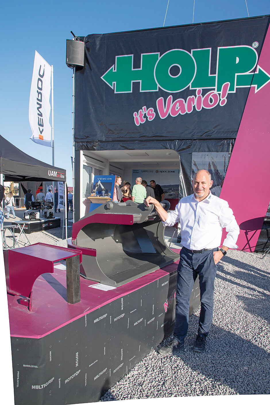 Bereits im Vorfeld der Bauma hatte Holp die Serie der RotoTop nach oben und unten erweitert, sodass deutliche Leistungssteigerungen dank Drehantrieben in elf Größen nun für alle Bagger mit einem Einsatzgewicht von 600 kg bis 45 t verfügbar sind (das bauMAGAZIN berichtete in Heft 10/22, Seite 66). Und auch bei den beiden Bauma-Neuheiten verfolgt das Unternehmen den immer gleichen Ansatz: Es wird nur dann etwas Neues entwickelt, wenn sich damit u. a. eine Zeitersparnis für den Anwender von mindestens 25 % ergibt.