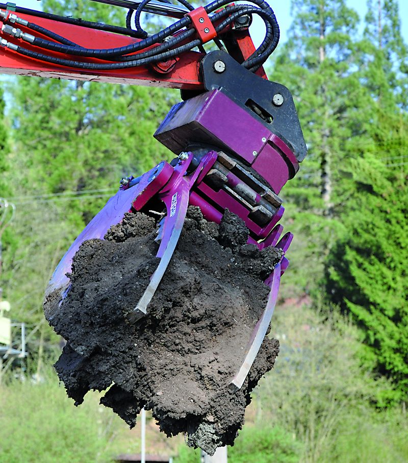 Auch das geringe Eigengewicht des MultiGrip gilt als Pluspunkt gerade bei kleineren Baggern, für die ein Greifer zu schwer ist. So wiegt der kleinste MultiGrip lediglich um die 50 kg – bei einer Schnittbreite von 500 mm – mit einer Öffnungsweite von 340 mm sowie einem Fassungsvermögen von 33 l und gelte damit, so Holp, als optimal für Minibagger ab 800 kg geeignet. Das MultiGrip-Programm umfasst zwölf Typen für Bagger bis 25 t. Hochwertige Materialkomponenten (Hardox 400) sollen eine lange Lebensdauer garantieren – bei geringem Wartungsaufwand.