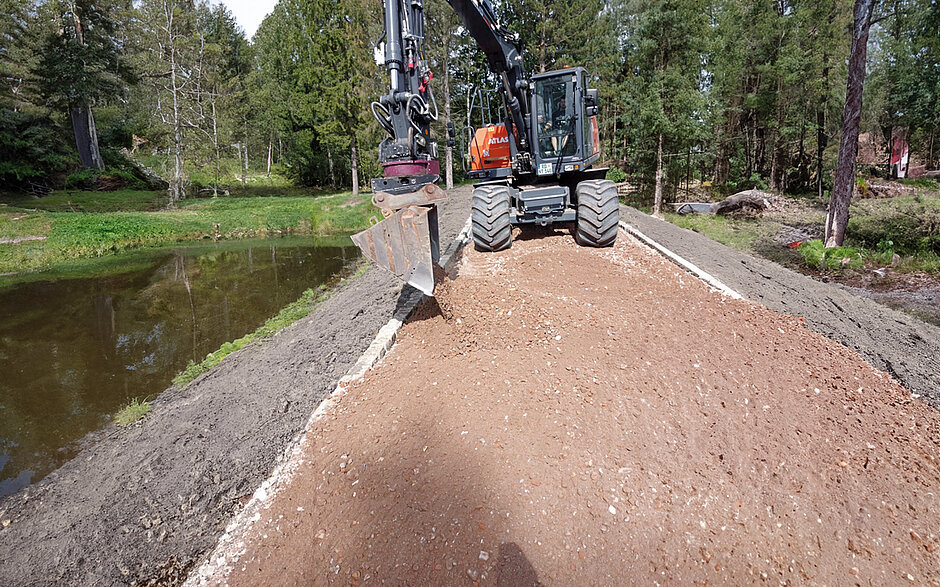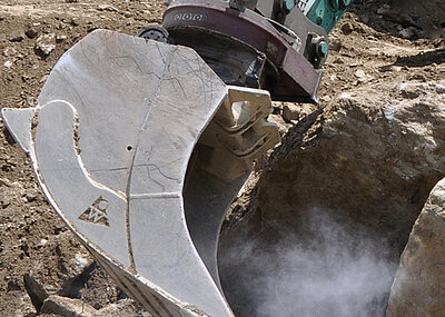 Diese spontane Entscheidung hat er nie bereut: »Ich hätte mir nie vorstellen können, dass man damit so gut arbeiten kann. Den RotoTop würde ich jederzeit wieder nehmen, denn das war die richtige Entscheidung für wirtschaftlicheres Arbeiten!« Timm nennt einige Vorteile: Man könne damit wesentlich schneller und effizienter arbeiten, weil man die Maschine seltener umsetzen müsse. Durch die Endlosdrehbarkeit sei der Löffel sehr flexibel, sodass man überall gut hinkomme und auch beispielsweise das Material vor sich herschieben könne. Ebenso sei die Einarbeitungszeit sehr kurz: Nach zwei bis drei Tagen habe man sich an den RotoTop gewöhnt und könne dessen Möglichkeiten voll nutzen. Heute frage er sich manchmal: »Wie habe ich das alles eigentlich ohne RotoTop gemacht?« und überlege sogar, auch den Kettenbagger damit auszustatten.