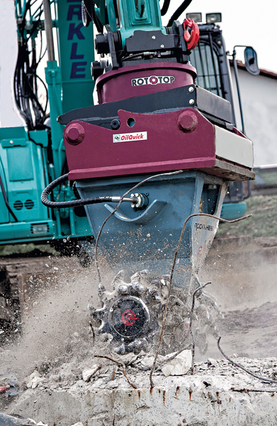 Bei häufigen Einsätzen mit Fräsen, Hämmern oder Verdichterplatten wird ein »Handgelenk« stark beansprucht. Hier gelte es, so Holp, genau hinzusehen, wie die Geräte aufgebaut sind, denn die Bauart spiele in puncto Betriebssicherheit eine tragende Rolle. Je kompakter ein »Handgelenk« sich zeige, desto weniger stehe es am Baggerstiel über und entsprechend weniger könne es beschädigt werden.