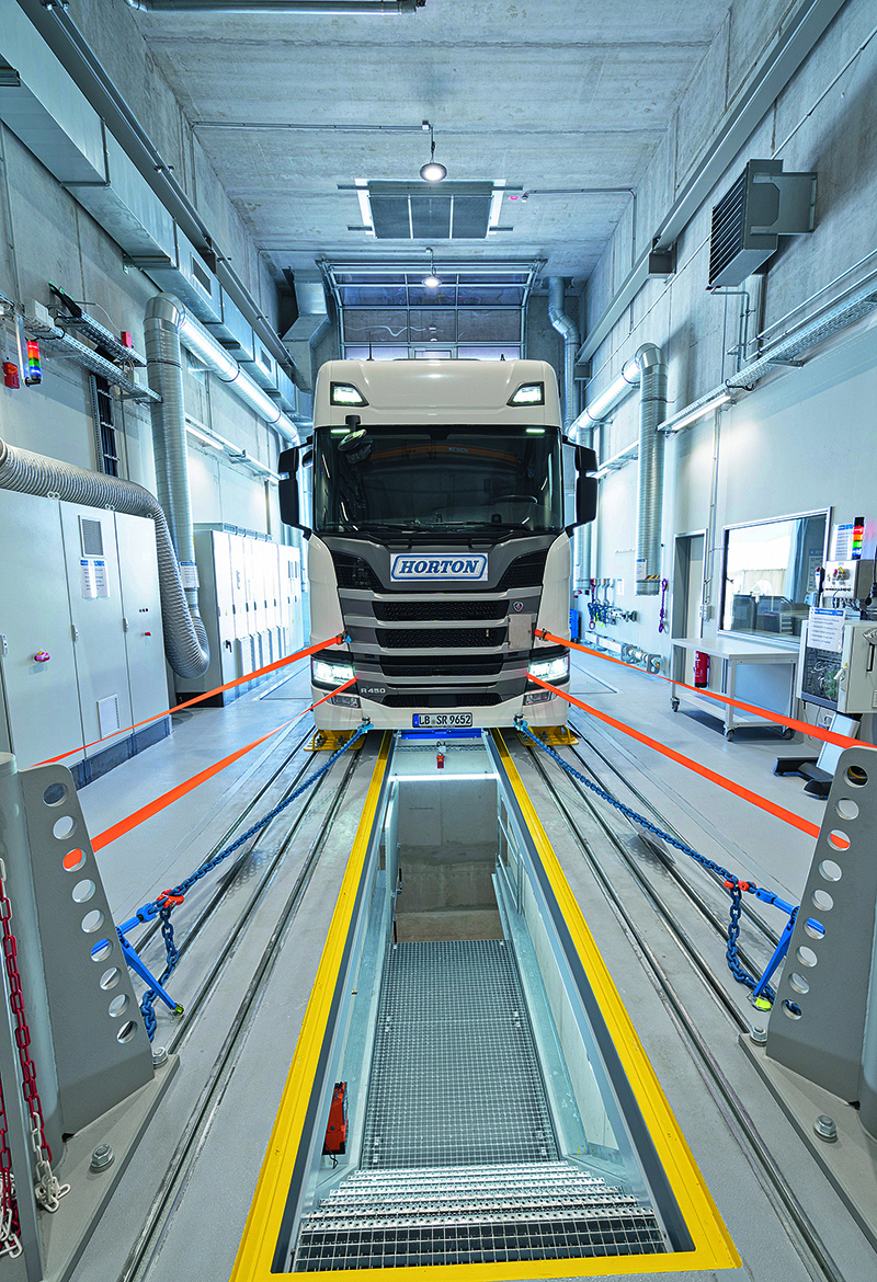 Horton setzt seit jeher verstärkt auf fundierte Entwicklungsarbeit. Die Anpassung und Optimierung von Lüftern und Lüfterantrieben für die jeweilige Kundenanwendung zählt zu den Kernkompetenzen der Entwicklungsabteilung in Schweinfurt. Durch die Verfügbarkeit von Konstruktion, Applikation über Musterbau mit Prüffeld bis hin zur Serienfertigung an einem Standort können Kundenanfragen schnell und flexibel bearbeitet werden. Der neue Rollenprüfstand soll noch umfassendere Produkttests als bisher mit den bestehenden Funktionsprüfständen ermöglichen. Auf ihm können mittlere sowie schwere Lkw bis hin zum Reisebus mit Leistungen von über 600 PS getestet werden. In dieser Dimension gibt es nach Angaben des Unternehmens europaweit nur 30 Prüfstände.