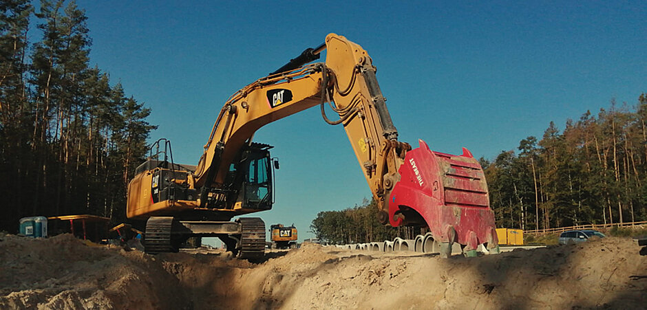 Die Reißlöffel »The Beast« ersetzen den bisher verwendeten Reißzahn und machen die Arbeiten im vorhandenen Felssand deutlich effektiver. Ausgerüstet mit hochwertigem ESCO-Zahnsystem dringt ein Beast-Reißlöffel nahezu mühelos auch in den härtesten Sandfelsboden. Dank spezieller Löffelgeometrie entwickelt das Werkzeug zudem maximale Reiß- sowie Hebelkräfte und leistet somit einen wesentlichen Beitrag bei den Bauarbeiten.