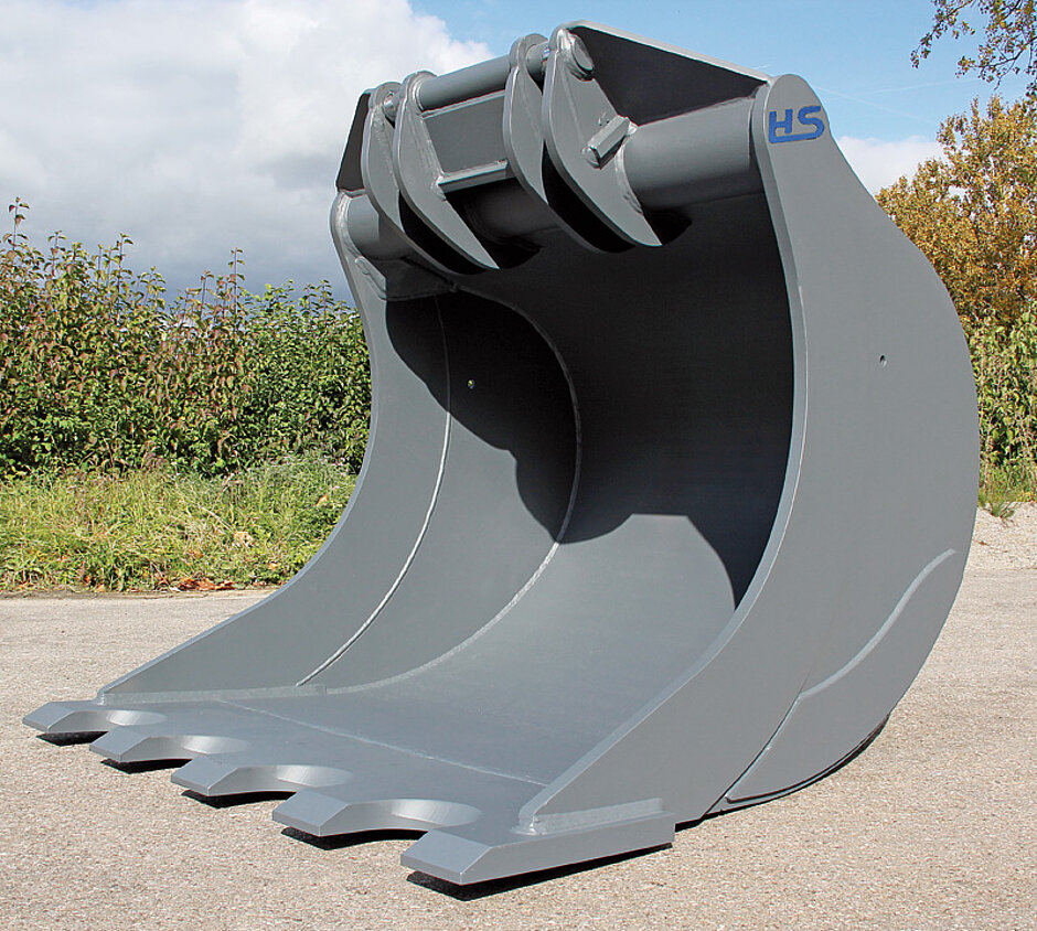 Da beim Kunden kein abrasiver Verschleiß vorliegt, hat sich die HS-Schoch-Konstruktion in Abstimmung mit dem Baggerfahrer für ein Zackenmesser aus Hardox 500 entschieden. Durch die flache Bauweise des Messers entsteht kaum Widerstand, somit ist kraft- und spritsparendes Arbeiten gewährleistet. Um dennoch der Belastung im Felseinsatz Stand zu halten wurde das komplette Gefäß aus Hardox 450 gefertigt. Ausgerüstet wurde der Löffel mit der in Österreich verbreiteten Schnellwechselaufnahme BMT-SW3. Der Felstieflöffel wurde an die Bedingungen des Kunden angepasst. Mit ihm lassen sich nun der Durchsatz erhöhen und zugleich die Spritkosten sowie Ausfallzeiten minimieren. §