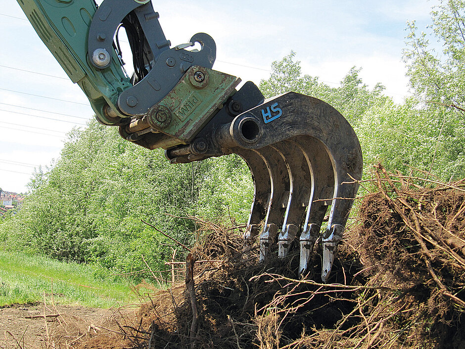 Speziell für Rodungsarbeiten hat der Anbaugerätespezialist und Verschleißexperte beispielsweise den HS-Wurzelkönig entwickelt: Dieser soll es ermöglichen, Baumstümpfe und Wurzelstöcke samt Seitenwurzeln schnell, effizient und ohne den Einsatz von Fräsen oder Spezialmaschinen komplett zu roden.