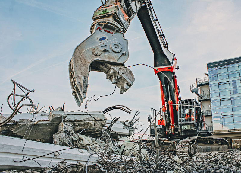 Neben dem Hydraulikhammer lieferte HS-Schoch bereits in der Vergangenheit bedeutsame Abbruchwerkzeuge an Oettinger, wie beispielsweise den Pulverisierer PDRP45, passend für Bagger von 38 t bis 48 t oder den PDRP20 für Modelle im Bereich von 19 t bis 25 t. Pladdet-Pulverisierer sind für den Abbruch und das Zerkleinern von Beton sowie das rasche Trennen der Eisenarmierungen vom Beton konzipiert. Die Pulverisierer verfügen über einen Zylinder mit Zylinderschutz, der die Gefahr größerer Schäden am Zylinder vermindern hilft. Um im Einsatz eine maximale Leistung bei minimalem Verschleiß zu garantieren, werden die Pladdet-Pulverisierer aus Hardox produziert, die bewegliche Backe ist aus verschleißfestem Gussstahl gefertigt.