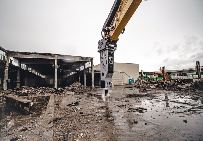 Der neue 7,5-t-Hammer ist für ein Baggereinsatzgewicht von 65 t bis 85 t konzipiert. Er verfügt über eine OilQuick-Orginalaufnahme OQ90 und entspricht damit dem zertifizierten Partnerprogramm Clean System von OilQuick zum Schutz der Anwender wie auch zur Sicherung der Produktqualität im Einsatz. Die Höhe des Hydraulikhammers bemisst sich inklusive Meißel (Ø 195 mm) auf 3 942 mm. Mit seiner 18 500 Joule starken Schlagenergie zeigt sich der Hammer vor allem für die schweren Abbrucharbeiten bestens gerüstet.