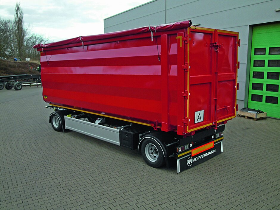 Mit dem kippbaren Anhänger mit Festaufbau soll diese Tätigkeit wesentlich beschleunigt werden: Der Gliederzug trifft ein, stößt dann rückwärts mit dem kompletten Zug an die Behandlungs- bzw. Verwertungsanlage, kippt den Behälter auf dem Anhänger aus, zieht vor, stellt den Anhänger ab, entleert nun den Container auf dem Motorwagen, kuppelt den Anhänger wieder an – fertig.