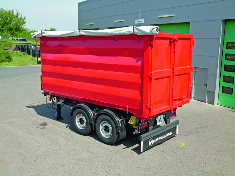 Ladegüter wie Bauschutt, Biomasse, Hackschnitzel, aber auch Recycling- oder Abbruchmaterial lassen sich mit den Hinterkipp-Anhängern wirtschaftlich transportieren und abkippen. Die Anhänger-Chassis bauen sehr flach auf und sind als Festaufbau in drei Aufbauvolumen – 30 m³, 35 m³ und 40 m³ – verfügbar. Die Grundvariante ist mit einem spantenlosen Behälter aus Qste-380-Material gefertigt und prädestiniert für den Biomassetransport. Für den Abbruch- und Bausektor sowie für die Schrottlogistik bietet Hüffermann individuell angepasste Kippaufbauten aus hochfestem und verschleißarmem Material an.