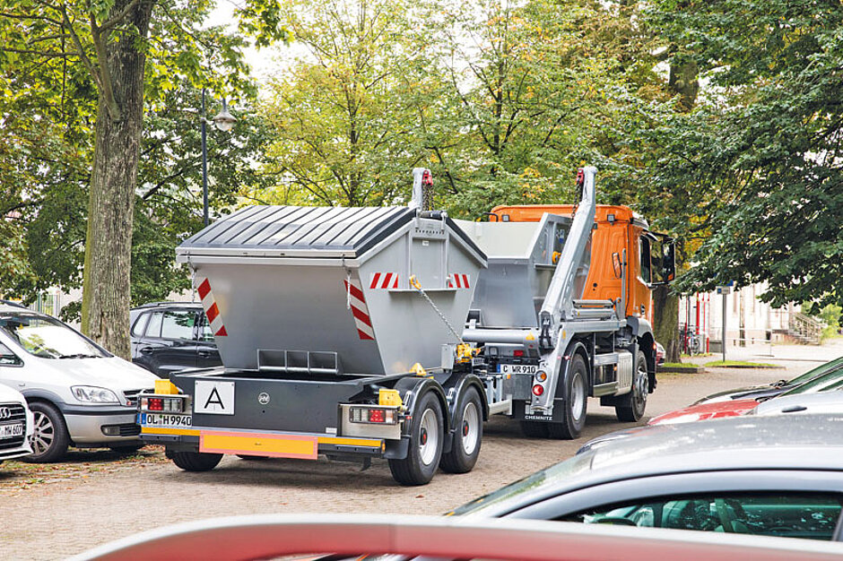 Nur wenige Lkw-Absetzkipper nutzen auf Kurzstrecke einen Anhänger. Als Grund geben viele Unternehmen die Enge und das starke Verkehrsaufkommen in Innenstädten und die damit verbundenen Fahr- und Rangierprobleme an. Der Mini-Carrier verdoppelt die Transportkapazität bei optimaler Kompaktheit des Gliederzuges. Die Rush-Hour bzw. die generell hohe Verkehrsdichte in den Ballungsräumen erfordert eine gute Planung der Touren, um leere Behälter auszuliefern bzw. Absetzmulden im Austauschverfahren zu bedienen. Der Mini Carrier ist nicht länger als ein Mittelklasse-Pkw und kann auch in einer Parklücke abgestellt werden, während der Motorwagen den Behälterwechsel einige Straßen weiter schnell vornehmen kann. Der Mini Carrier ist ein wendiger Transportanhänger für Absetzbehälter nach DIN 30 720/30720-1 und speziell für die Baustellenbestückung und im Entsorgungsbereich für Kurzstreckeneinsätze konzipiert. Der Nutzlastriese ist schnell angehängt und erfüllt bei geringem Kraftstoff-Mehraufwand seine Aufgaben.