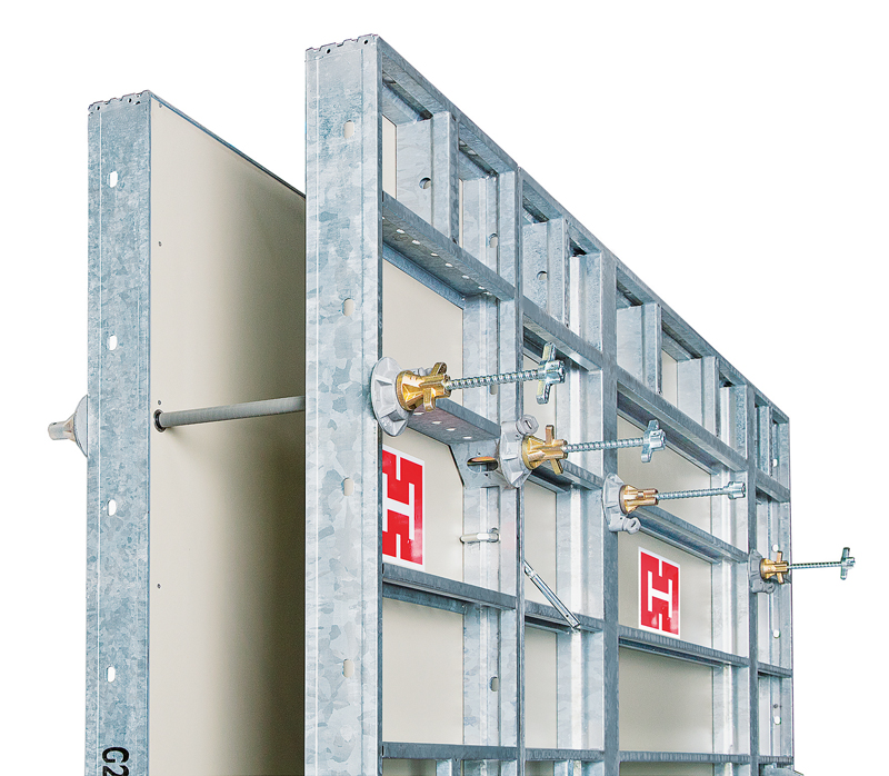 Mehrwert verspricht die standardmäßige Ausstattung der neuen Schalung Rasto G2 mit 15 mm starker Kunststoffschalhaut Ecoply mit Ankerlochverstärkungen aus Edelstahl. Diese verspricht laut Anbieter nicht nur einen durchschnittlich dreimal höheren Einsatzgrad als konventionelle Sperrholzbeläge, sondern stehe auch für eine dauerhaft hochwertige Betonoberfläche bei gleichzeitig geringem Reinigungs- und Reparaturaufwand. Das vollverzinkte 12 mm hohe Stahlrahmenprofil der Tafel unterstützt die Wartungsfreundlichkeit. t