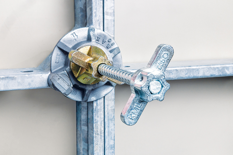 Wesentlichen Anteil an der zeitsparenden Handhabung der Rasto G2 hat der neue Rasto-Klemmhebel. Das Verbindungsmittel wird von Hand bedient und benötigt kein weiteres Werkzeug, um eine dichte, zugfeste und versatzfreie Verbindung zwischen zwei nebeneinander stehenden Schalelementen herzustellen. Zwei Klemmhebel reichen beispielsweise, um zwei XXL-Tafeln mit einer Schalfläche von 12,96 m² zu verbinden. Gleichzeitig dient der neue Klemmhebel auch als Ausziehwerkzeug für den Rasto-Dichtkonus.