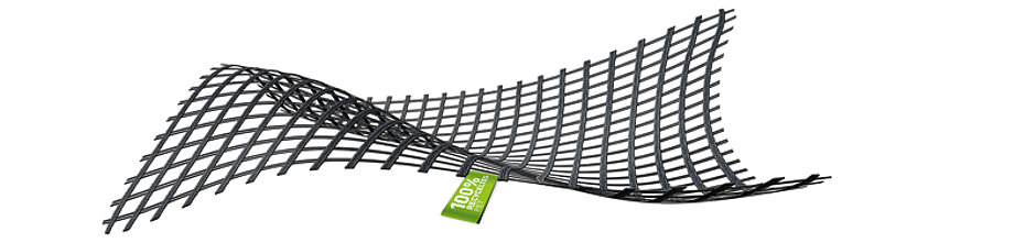 Anders als bei den klassischen HaTelit-Bewehrungsgittern, die aus konventionell hergestelltem PET bestehen, werden bei der EcoLine die Garne durch recycelte ersetzt. Gewonnen wird das recycelte Material aus entsorgten PET-Flaschen, die über den Warenkreislauf in Form eines Granulats wieder einer neuen Aufgabe zugeführt werden können. »Das recycelte PET, das wir verwenden, ist ein gleichwertiger Ersatz für das originäre PET-Garn. Es ist von gleich hoher Qualität und bringt dieselben Eigenschaften mit«, so Sven Schröer, einer der Geschäftsführer bei Huesker. Mit jedem Kilogramm Recycling-PET-Garn werden etwa 4,3 kg CO₂-Emissionen eingespart, wenn auf konventionelles PET-Garn verzichtet wird. Hochgerechnet auf die Produktion von Geotextilien in der Größe der Fläche eines Fußballfeldes werden etwa 1,2 t CO₂ eingespart, was einer Strecke von rund 42 000 km mit dem Pkw entspricht.