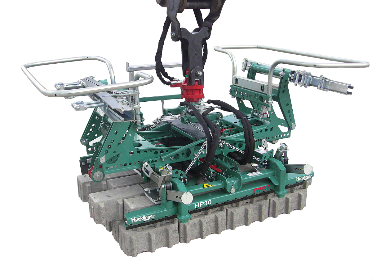 Dank überwiegendem Direktvertrieb im Inland und engem Kontakt mit Kunden sind den Hunklinger-Konstrukteuren die dynamischen und sich ständig verändernden Anforderungen für Verlegezangen vertraut. Deutschland gelte, so Hunklinger, als das Land mit der wohl größten Vielfalt an Betonpflastersteinen. Der neue Pflastergreif HP30 profi-twist wurde für den Einsatz an Minibaggern ab rund 3 t konzipiert. Darüber hinaus eignen sich Pflastermaschinen und Lader als Trägergeräte.