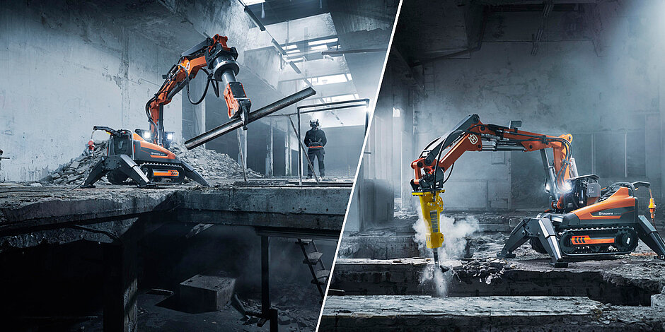 Im emissionsfreien Einsatz zu sehen sind die neue Akku-Rüttelplatte LFe 60 LAT zur Bodenverdichtung, der handliche und leistungsstarke Akku-Trennschleifer K 1 PACE sowie der K770 Dry Cut mit integrierter Staubabsaugung. Darüber hinaus zeigt Husqvarna Construction unterschiedliche Heger Diamantwerkzeuge für die Bau- und Steinindustrie sowie die elektrisch angetriebenen DXR-Abbruchroboter der neuesten Generation. Diese lassen sich mit einer Breite von nur 78 cm und der neuen Einhandsteuerung flexibel an jeden Einsatzort bewegen – sogar Treppen sollen die Maschinen mit eigenem Antrieb mühelos meistern können. Über optionales Zubehör wie unterschiedliche Aufbrechhämmer, Brecher und Stahlscheren kann ein DXR-Abbruchroboter multifunktional für ein breites Anwendungsspektrum eingesetzt werden. Abbruch- und Recyclingarbeiten jeder Art lassen sich auf Knopfdruck und aus einer sicheren Entfernung von bis zu 300 m durchführen, so Husqvarna.