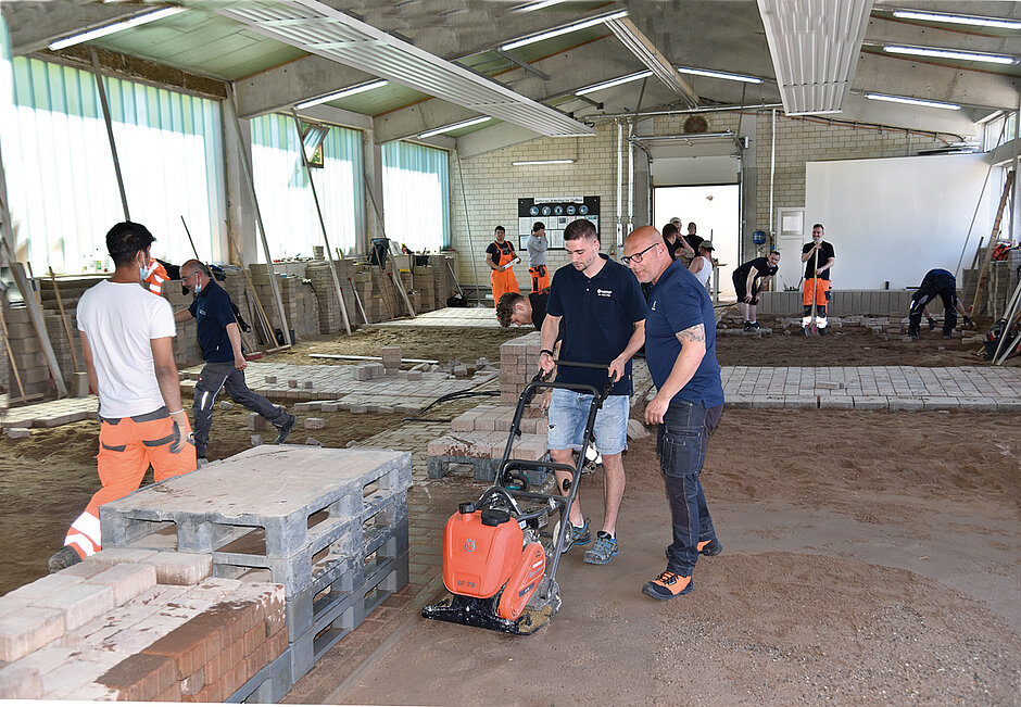 Vertreten waren u. a. Bodenverdichter wie der LT 6005: Der leistungsstarke Stampfer ist laut Husqvarna für Böden wie Lehm oder Schlamm entwickelt und eignet sich ideal zur Verdichtung in Gräben oder an anderen engen Stellen wie an Säulen oder Rohrleitungen. Das mache ihn zu einem vielseitigen Helfer. Ausgestattet ist er mit einem Honda-GXR120-Motor mit 2,7 kW Leistung. Aufbringen kann der Verdichter rund 16,5 m/min – das Gewicht liegt bei ca. 68 kg. Den Auszubildenden fiel hierbei die gute Kontrollierbarkeit des Stampfers, aber eben auch das geräuscharme Arbeiten auf.