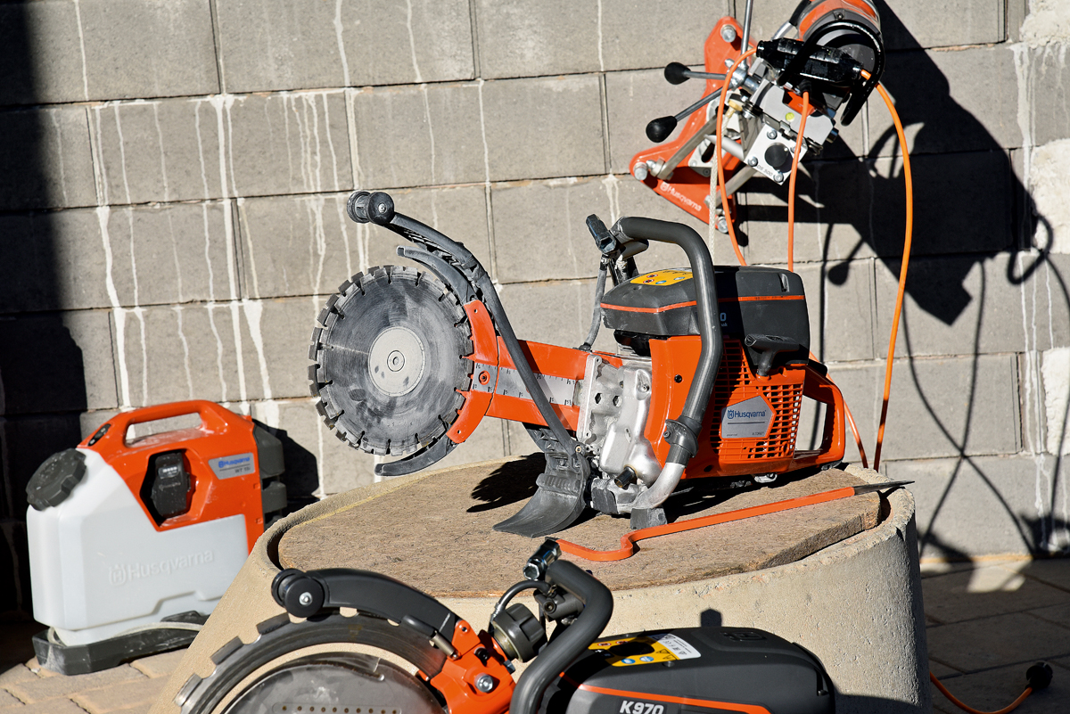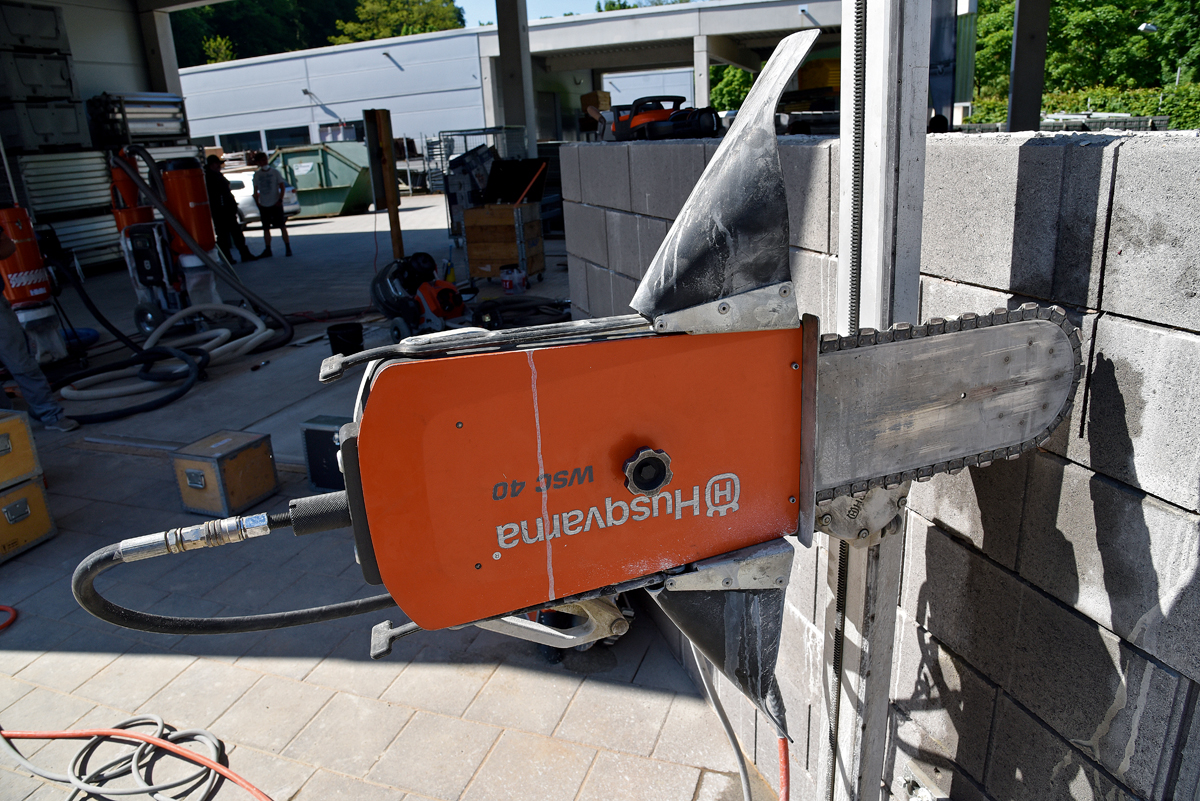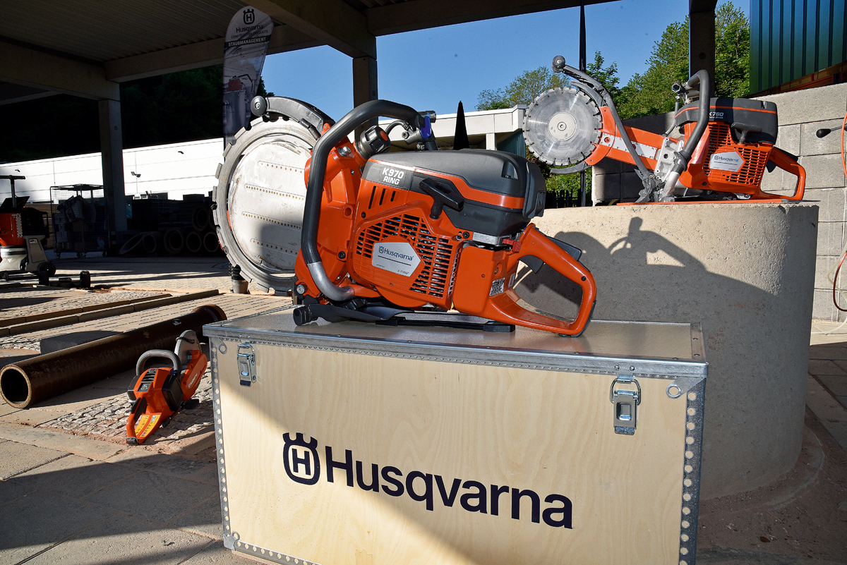 Begutachtet wurden aber auch Lösungen wie Wandsägen: Das in Saarbrücken ausgestellte und live vorgeführte Kettensägen-Anbaugerät WSC 40 soll Überschnitte bei Wandsägearbeiten vermeiden. »Auch Schnitte nahe an Ecken oder das Schneiden von kleinen Öffnungen lässt sich damit erledigen«, so die Produkt-Manager von Husqvarna gegenüber den Besuchern. Erzielen lassen sich mit der WSC 40 Schnitttiefen von maximal 400 mm. Viel Aufmerksamkeit erhielt zudem der Akku-Trennschleifer K 535i: Geringe Vibrationen und ein gutes Verhältnis zwischen Gewicht und Leistung sollen das Gerät zu einem Allround-Gerät am Bau machen, das schnelle Schnitte für Arbeiten rund um das Haus ermöglicht. Geeignet ist der K 535i beispielsweise für Granit, Dachziegel, Bodenfliesen oder Beton-Gartenplatten bei maximalen Schnitttiefen bis 76 mm. Wer wiederum Schnitttiefen von bis zu 270 mm benötigt, konnte den Trennschleifer K 970 Ring ausprobieren, der sich laut Husqvarna als »besonders schnittfreudig« erweise und doppelt so tief schneiden könne wie herkömmliche Trennschleifer. Komplettiert wurde das Segment durch den K 760 Cut-n-Break, der sogar Schnitttiefen von bis zu 400 mm möglich macht. Hochgeschwindigkeitsscheiben sollen hier in Kombination mit den starken 3,7 kW Leistung für ordentlich Power auf der Baustelle sorgen. Benzingetrieben, robust und leistungsstark zeigte sich auch der Fugenschneider FS 400 LV: Als Universal-Fugenschneider soll er insbesondere für kleinere Reparaturarbeiten in Beton und Asphalt dienen – dabei sind Schnitttiefen von bis zu 189 mm möglich.