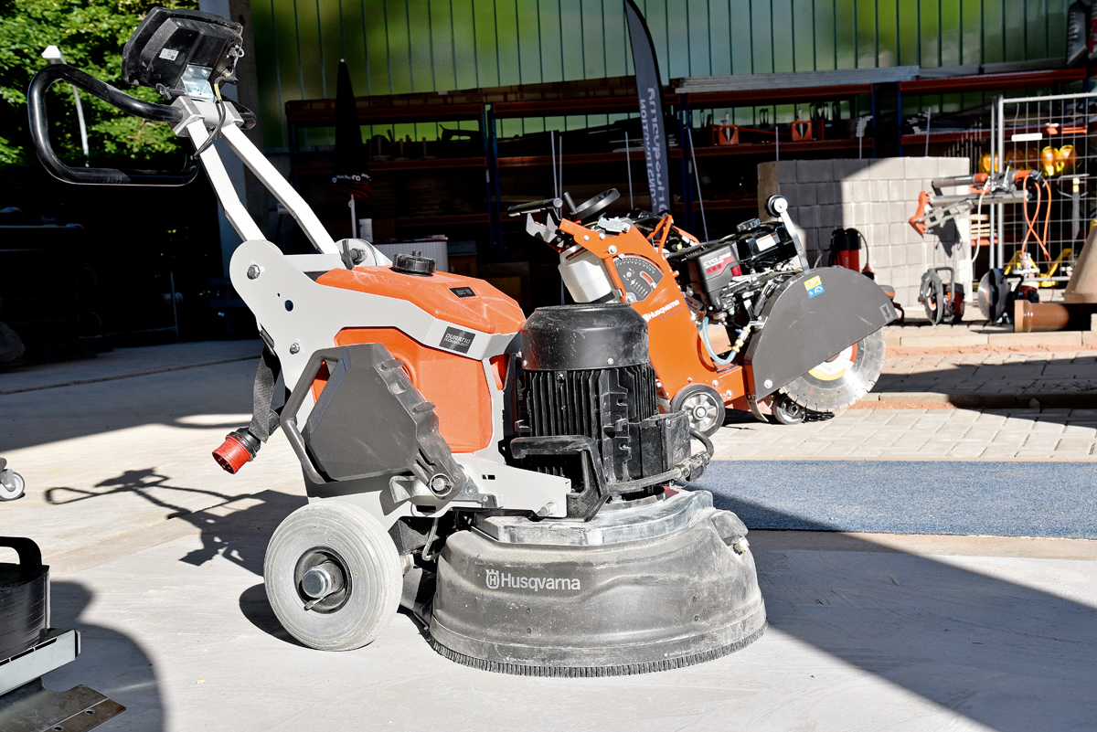 Vertreten waren im Rahmen der Live-Vorführungen auch Produkte von Blastrac – vermarktet werden die Maschinen zur Oberflächenbearbeitung mittlerweile unter der Marke Husqvarna (das bauMAGAZIN berichtete in Heft 2/22, Seite 17). So konnten sich die Besucher zum Beispiel ein Bild vom Boden-Stripper BS75 machen. Entwickelt wurde er zur Entfernung von Bodenbelägen. Das elektrisch angetriebene Gerät ist auffallend leise im Betrieb, ermöglicht schnelles und präzises Arbeiten und lässt sich für den Transport zerlegen, was die Handhabung am Bau deutlich erleichtert. Um Entfernen und Aufräumen ging es wiederum bei der Präsentation der Kugelstrahlmaschine 1-8 DPS30: Strahlmittel aus Stahl wird mit hoher Geschwindigkeit auf die zu bearbeitende Oberfläche geschleudert und direkt von der Maschine wieder aufgenommen. Mittels Luftfilter lassen sich Staub und andere Partikel aufnehmen, was ein staubfreies Arbeiten ermöglichen soll. Laut Husqvarna punktet die Kugelstrahlmaschine insbesondere durch hohe Wendigkeit, geringe Vibrationen und eine robuste Bauweise.