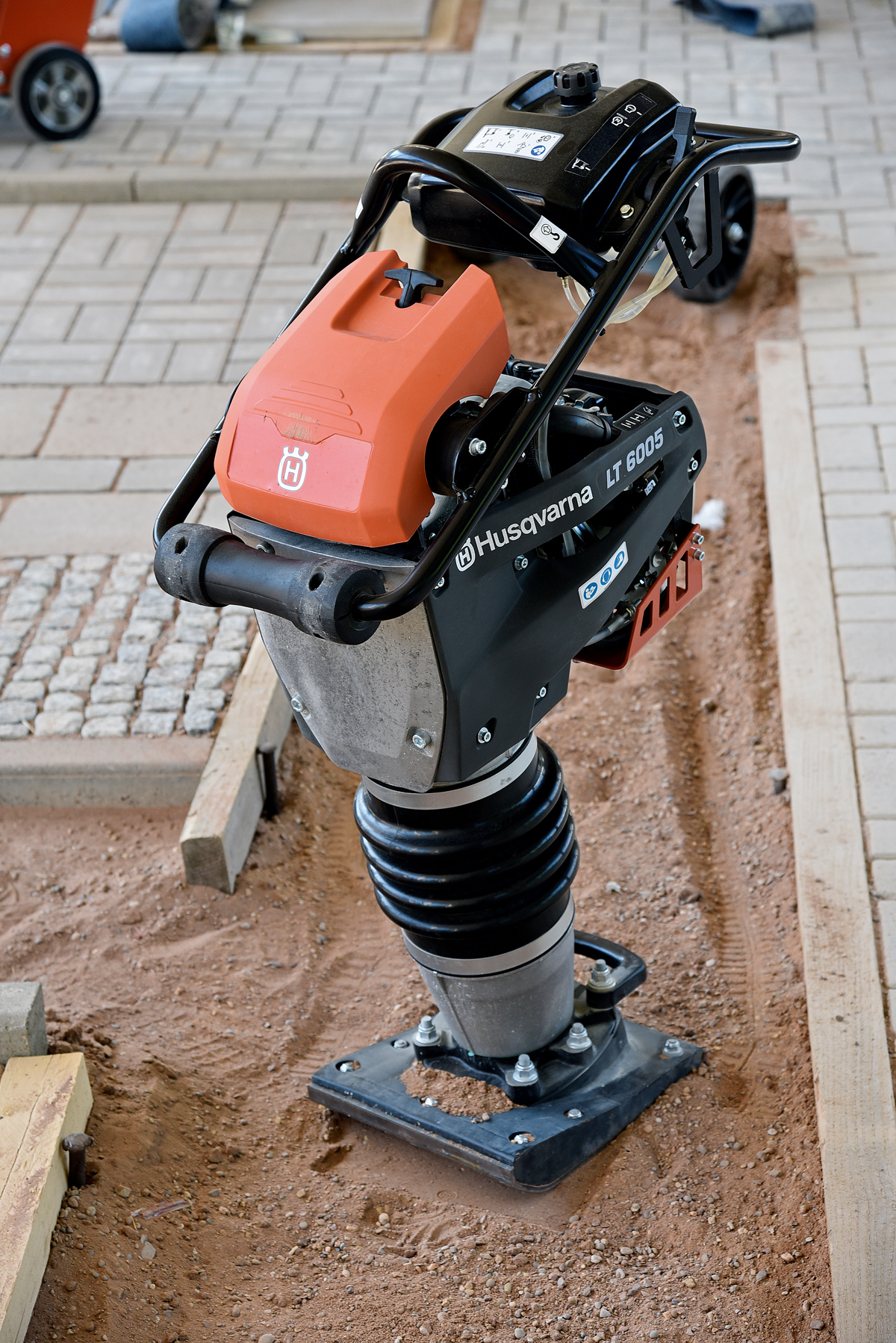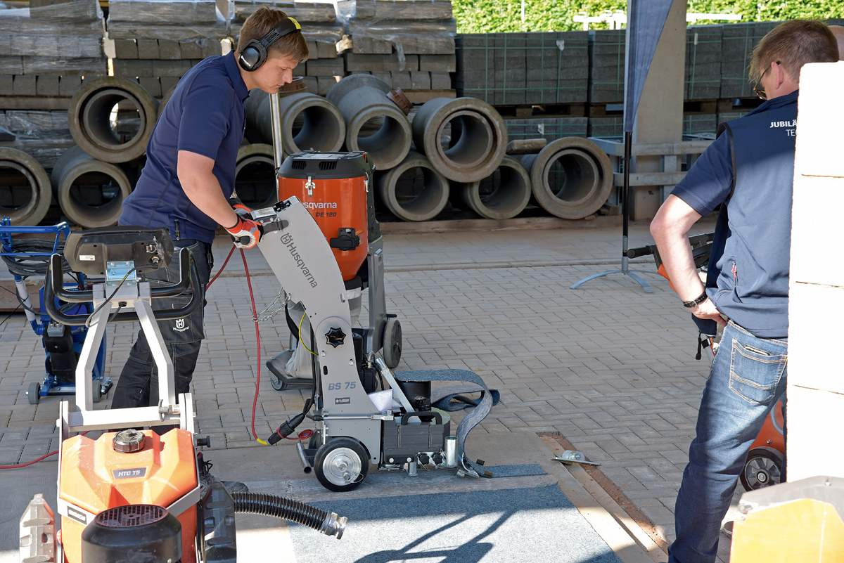 Live erleben durften die Besucher außerdem den LF 75: Der Bodenverdichter mit vorwärtslaufender Rüttelplatte eignet sich für das Verdichten von Asphalt und Erde – laut Husqvarna ideal geeignet für Reparaturen und Wartungsarbeiten. Testen durften Interessierte das Gerät beispielsweise auf Sandboden in den Lern- und Übungsabteilungen der »AGV Bau Saar«. Dort konnte der LF 75 u. a. durch seinen kraftvollen GX160-Motor mit 3,6 kW, einer Geschwindigkeit von 27 m/min und die einfache Handhabung überzeugen. Von Vorteil ist bei der täglichen Arbeit, dass der LF 75 über einen großen Wassertank verfügt, der sich schnell nachfüllen lässt.