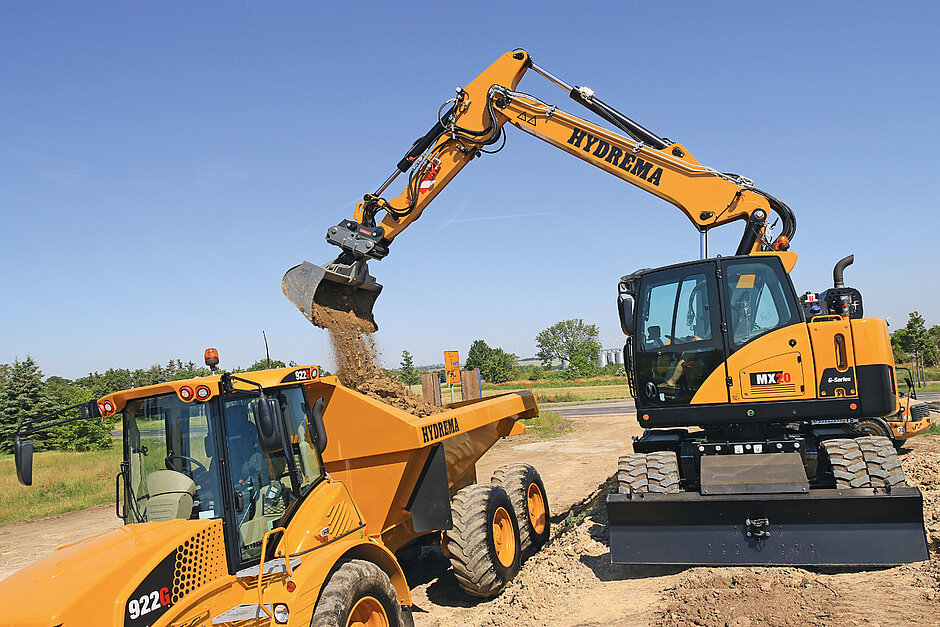 »Der MX14G ist der wohl kräftigste Bagger in der Kompaktmobilklasse und findet sogar in Baustellen Platz, wo vielleicht noch 5-t-Kompaktbagger zum Einsatz kommen. Aber ausgestattet mit der Hubkraft von großen Mobilbaggern in der 16-t-Klasse und der gleichen Hydraulikleistung wie der große MX20G, sowie auf Wunsch mit dem gleichen Fahrantrieb versehen, ist die Maschine im Gelände kaum zu bremsen«, wie der Vertriebschef betont. Der MX14G hebe auch schwere Lasten bzw. arbeite auch mit Hochleistungsanbaugeräten, die viel Hydrauliköl erfordern, da mehr als 407 l Leistung zur Verfügung stünden. Der Begriff »Compact Beast« komme also nicht von ungefähr.