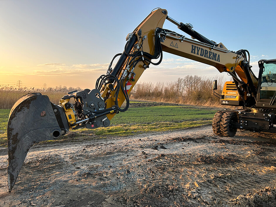 Der von ZD Solution entwickelte Tiltrotator ist abgestimmt auf die von Hydrema werkseitig vorgenommene Vorbereitung mit speziellen Tiltrotator Joysticks und der bereits montierten Steuerung hierzu. Eine aufwendige Montage oder Anpassung des Baggers zum Betrieb eines Tiltrotators entfällt bei dem MX City-Bagger aus Dänemark komplett.