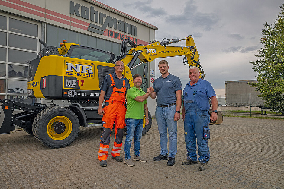 Peter Gerlach, Prokurist und verantwortlich für Disposition und Einkauf bei der NR-Unternehmensgruppe, bestätigt, dass nicht nur die angenehme und unkomplizierte Zusammenarbeit mit der Kohrmann Baumaschinen GmbH wichtig ist, sondern eben auch die Tatsache, dass die Baukolonnen auf den Baustellen durch gute Technik bestens versorgt sind: »Wenn eine Maschine überall in die engen Baustellen hineinpasst und trotzdem mit großer Kraft Material bewegen kann, dann habe auch ich als Disponent nicht ständig neue Forderungen nach weiteren Maschinen. Abgesehen vom Beschaffungsprozess sind dann weitere Transportkosten und die Wartezeit auf der Baustelle ein erheblicher Kostenfaktor. Die Kompaktheit des ›MX17G‹ verbunden mit der Kraft ist ein ausschlaggebendes Argument für unsere Effizienz.«s