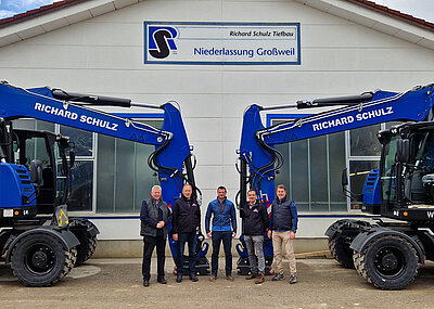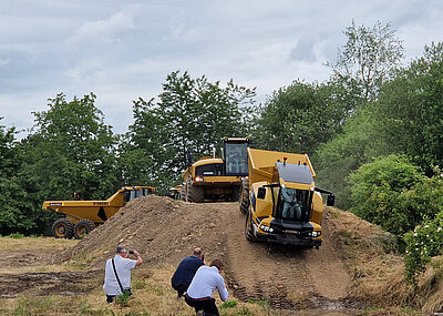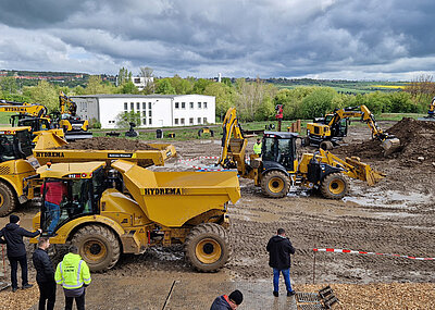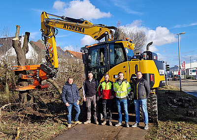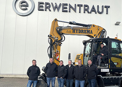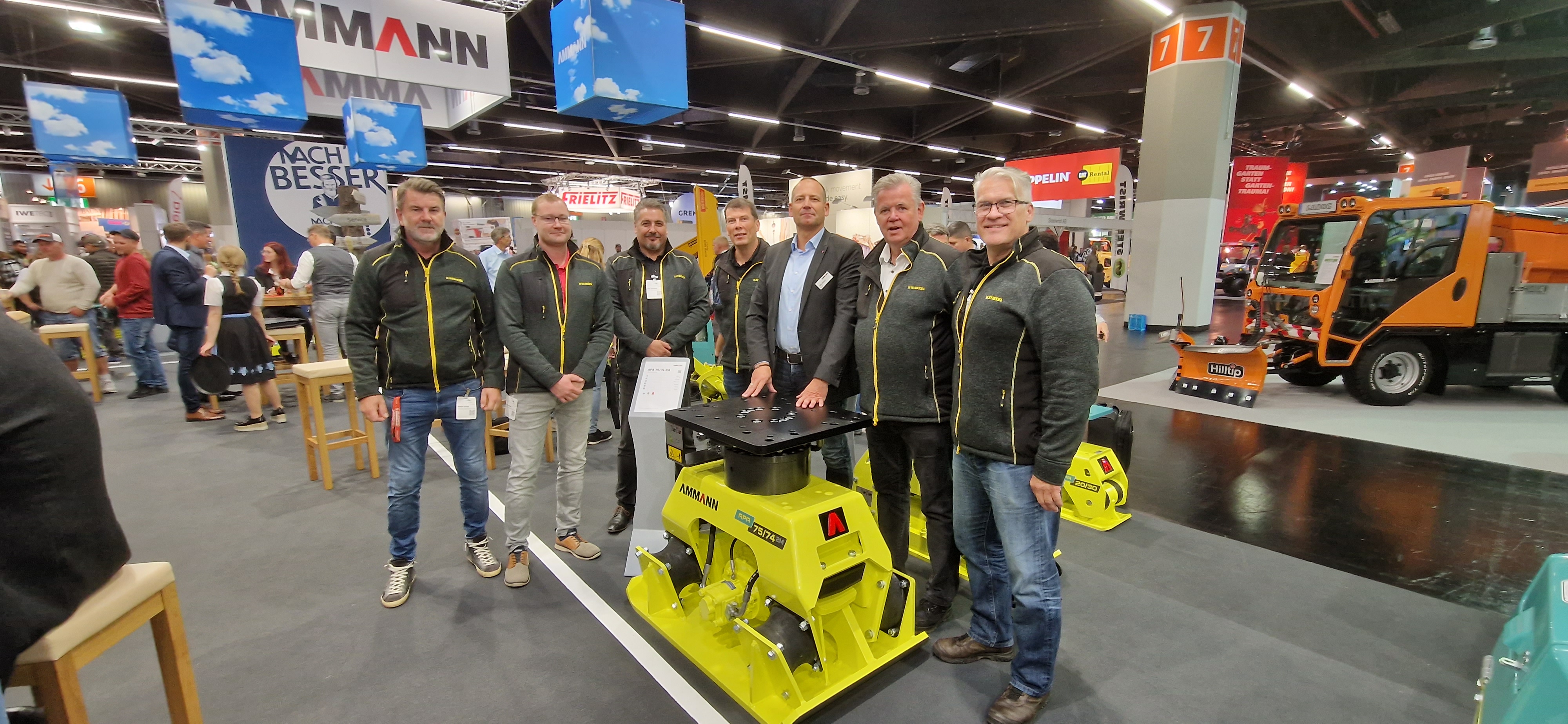 Auch ohne eigenen Stand war HYDREMA auf der GaLaBau 2022 präsent. Vertriebsleiter Martin Werthenbach und Serviceleiter Mario Haun, sowie alle vier Regionalleiter nutzten den Donnerstag, um gemeinsam auf der GaLaBau Flagge zu zeigen. Wichtig war ein Besuch bei dem Verdichtungsspezialisten, dem Schweizer Familienunternehmen AMMANN, denn AMMANN wird auf dem bauma-Stand von HYDREMA den ersten Anbauverdichter für Tiltrotatoren zeigen. AMMANN-Vertriebsleiter Thilo Ohlraun sagt dazu: „Der HYDREMA Bagger ist eh für den Einsatz mit Tiltrotator konzipiert und verfügt als kompakte Maschine über eine enorme Pumpenleistung. Dies hat auch der führende Hersteller für hydraulische Schnellwechsler, OilQuick erkannt. Mit der Weiterentwicklung des OQTR, einem Tiltrotator von ENGCON als High-Flow Lösung, ist es nun möglich den Verdichter direkt am Tiltrotator angebaut, zu betreiben. Bisher hat AMMANN Anbauverdichter mit Rotator gebaut, doch durch die technische Lösung mit dem OQTR ist der Drehantrieb überflüssig geworden. Wir freuen uns auf der bauma zum ersten Mal einen Anbauverdichter ohne fest aufgebauten Rotator zu zeigen.“