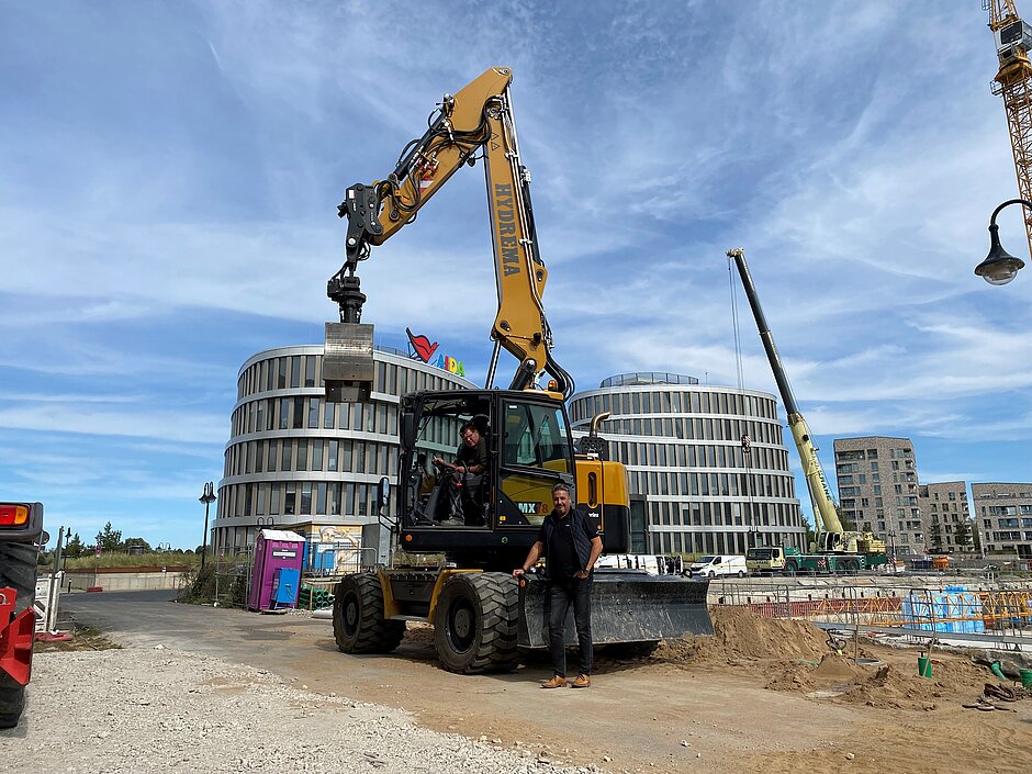 Er verfügt bereits über 25 Geräte in der Klasse zwischen 1,8 und 25 to Einsatzgewicht, aber der immer enger werdende Arbeitsbereich der Maschinen hat Krempien dazu gezwungen, am Markt nach weiterer verfügbarer Maschinentechnik Ausschau zu halten. „Im Vergleich zu allen anderen Maschinen hebt sich der MX18G deutlich ab. Die Kompaktheit in Verbindung mit der Hubleistung ergibt ein echtes Darstellungsmerkmal. Der MX hat den Schacht tatsächlich gehoben, während die anderen da dann bei Gut und Böse waren“, erzählt Stefan Krempien. Es sei der immer größer werdende Bedarf nach bezahlbarem Wohnraum der auch den verfügbaren Arbeitsbereich für Maschinen immer mehr einschränkt. „Aufgrund des kompakten Arbeitsbereiches habe ich mich bei dem MX18 auch für den OQ65 als Schnellwechsler entschieden, denn in diesen Baustellen muss der Fahrer nicht nur sehr häufig die Löffel wechseln, sondern auch den Zweischalengreifer anbauen und das muss möglichst platzsparend und schnell gehen. Da kann der Fahrer nicht noch aussteigen, um Schläuche anzuschließen, sondern das muss zügig von der Maschine aus erfolgen.“