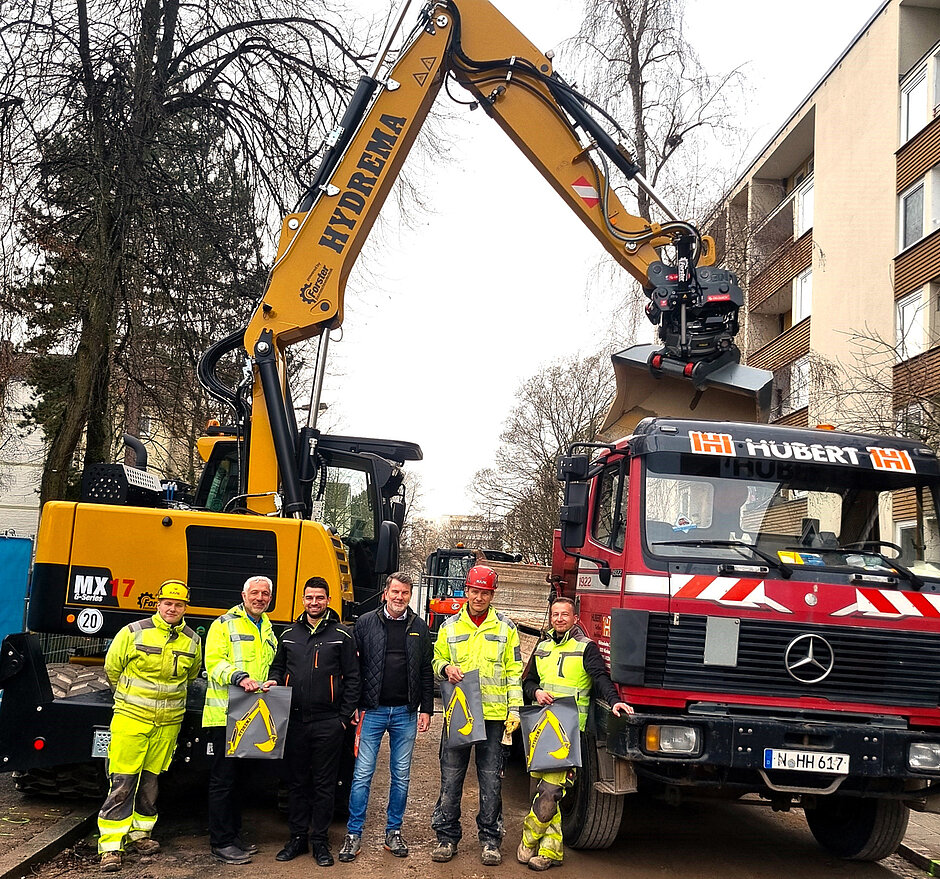 „Mit dem Hydrema habe ich bereits Geld eingespart.“ Zu diesem Ergebnis komm der Geschäftsführer der Hermann Hubert GmbH, Harald Hubert, bereits nach wenigen Wochen. Das 1909 von Harald Hubert in Nürnberg gegründete Unternehmen war zunächst auf die Bereiche Hoch- und Tiefbau ausgerichtet. Inzwischen gehören auch Kanal- und Straßenbau sowie die Bereiche Kanalisierung und Prüfung zu den Tätigkeitsfelder. „Wir haben uns auf den innerstädtischen Einsatz spezialisiert und werden im Raum Nürnberg – Fürth – Erlangen bevorzugt dann gerufen, wenn es eng, kompakt und schwierig ist“, so Harald Hubert. Und aufgrund der spezialisierten Ausrichtung hat die Maschinentechnik für den Unternehmer eine besondere Bedeutung: „Wenn wir gerufen werden, muss es meistens schnell gehen. Da kannst Du nicht erst eine Baustellenbesichtigung machen und überlegen, welche Maschinen am sinnvollsten einzusetzen sind. Da brauchst Du eine ‚Allzweckwaffe‘, und die haben wir mit dem Hydrema MX17G gefunden.“