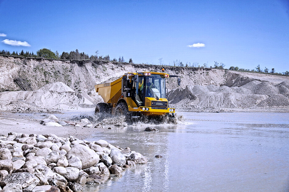 Der dänische Hersteller bietet eine große Auswahl an Modellen innerhalb der Reihe 912, mit der Möglichkeit unterschiedlicher Fahrgestelle. Eine der am häufigsten verwendeten Optionen ist die MultiTip Schwenkmulde. Dieses System ermöglicht es, die Ladung innerhalb eines 90°-Winkels überall hin von hinten bis zur Seite abzugeben, und ist ideal für Arbeiten in beengten Bereichen.