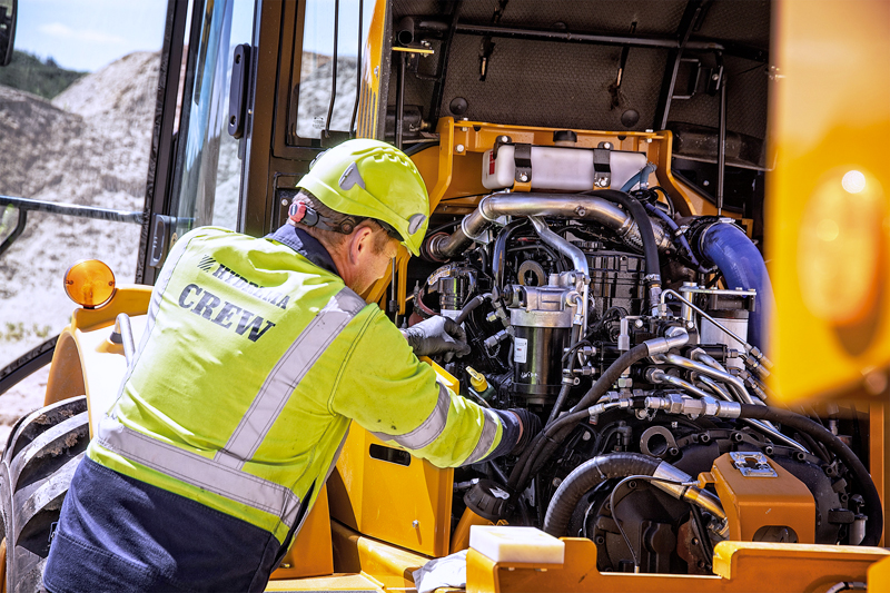 Der Motorraum wurde neu organisiert, um Zugang zu allen Wartungsfiltern und Kontrollpunkten zu ermöglichen, ohne auf die Maschine steigen zu müssen, und es wurden zusätzliche Ablassventile eingebaut, um ein einfaches und sicheres Ablassen des Öls zu ermöglichen. Der Kühlerraum wurde mit einer neuen, leicht zugänglichen Verkleidung versehen, und für den Fall, dass Sie auf die Maschine klettern müssen, stehen 3 Kontaktpunkte zur Verfügung, um Ausrutscher und Stolpern zu verhindern.