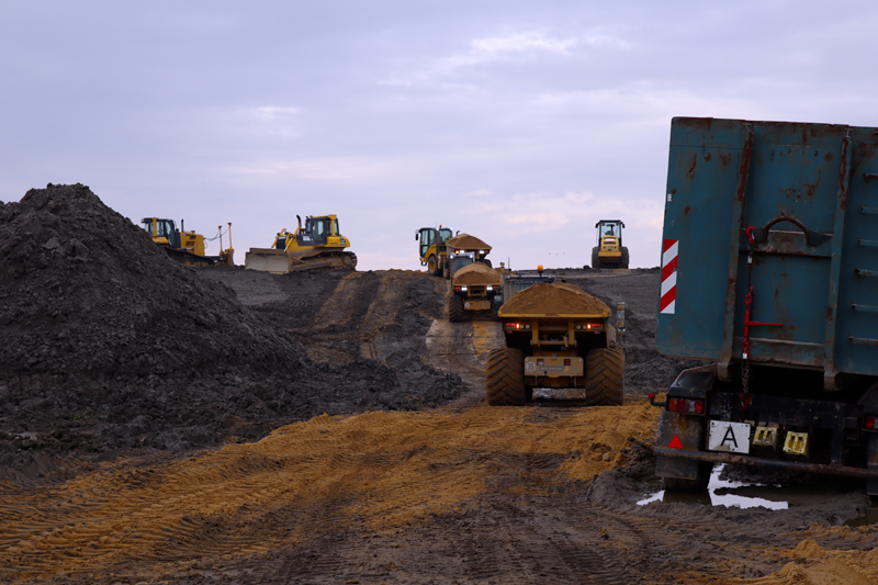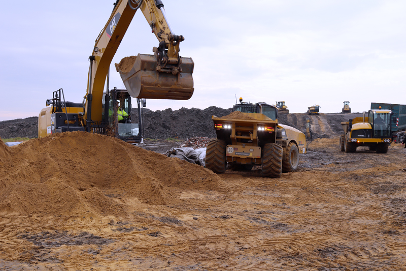 Der 707G erweist sich für diesen Job als ideale Maschine, weil sein Gesamtgewicht sehr niedrig und die Baubreite ideal für die schmalen Straßen sind. Gleichzeitig sind die ca. 3 km Fahrtstrecke zwischen dem Anleger und der Warft, sowie die unwegsamen Bodengegebenheiten insgesamt, sehr entscheidend für die Auswahl des 707. Die Dumper fahren wie Ameisen ständig zwischen Anleger und Warft hin und her und müssen schließlich den unwegsamen Boden der Warft hochfahren und in den Sockel der Warft auch runterfahren. Der nasse und der extrem weiche Boden sind da kaum für Radfahrzeuge zu überwinden. Die riesige Komfortkabine für die Fahrer, die da den ganzen Tag auf dem Dumper sitzen, die automatisch schaltende Differentialsperre mit dem kräftigen Allradantrieb und die Abschaltautomatik des Motors, die wie bei einem PKW funktioniert, sind da weitere gute Argumente.