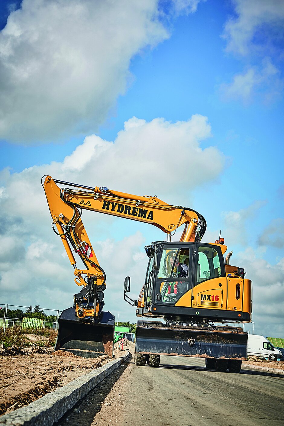 Hydrema biete, so Werthenbach, seinen Kunden mit seinem Produkt nicht nur einfach eine Baumaschine, sondern eine Lösung für viele Einsatzprobleme an. Mit dem kurzen Hecküberstand und dem kurzen vorderen Schwenkradius könne sich selbst der 18 t schwere Hydrema-City-Mobilbagger so kompakt machen, dass er in Baustellen passe, wo sich sonst nur Minibagger in der Klasse von 5 t bis 8 t drehen könnten. »Dabei verfügt der MX-Hydrema über die höchsten Hubkräfte und die längste Reichweite seiner Klasse«, so Werthenbach. »Und wenn der Fahrer in der größten Kabine dieser Baggerklasse Platz nimmt und den Komfort mit elektrisch verstellbaren und beheizten Spiegeln, dem beheizten Fahrersitz und der elektrisch öffnenden Motorhaube genießt, dann weiß der Fahrer nicht nur, dass er in einem Premiumprodukt sitzt, sondern er kann sehr sicher und souverän seiner Arbeit in der beengten Baustelle nachgehen«, betont Werthenbach stolz.