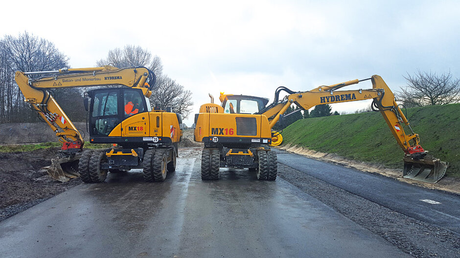 Die Leichtigkeit, mit der der MX18 ein 5,6 t schweres Gewicht bewegte, habe, so erinnert sich Björn Herbers, schnell alle überzeugt. Auch die große Reichweite, die größte Kabine seiner Klasse und der damit verbundene Komfort, die Serienausstattung, die Feinfühligkeit der Bosch-Rexroth-Hydraulik und, – wie Christian Deppe später im Einsatz feststellte – der niedrige Dieselverbrauch, seien Argumente gewesen, die dafür sorgten, dass heute bei Beton- und Monierbau gleich fünf MX-City-Bagger von Hydrema im Einsatz sind.
