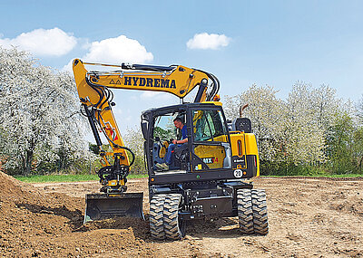 Die Investition in einen neuen Mobilbagger mit Komplettausstattung, Schnellwechsler und Tiltrotator von Oilquick und einem passenden Löffelset gestaltete sich jedoch für das junge Unternehmen schwieriger. Daher unterstützte der Auftraggeber, die Fa. Hagedorn, den Jungunternehmer und sprang als Investor für ihn ein. Die Fa. Staufen bestellte einen neuen MX18G nach den Wünschen von Florian Weber – getönte Scheiben, 18 Zusatzscheinwerfer, LED Beleuchtung, Spannungswandler, Natostecker und ein neues Display wurden verbaut. Der MX18G läuft mit einem Schnellwechsler von Oilquick OQ70/55 und einem Highflow-Tiltrotator von Oilquick in Sandwichbauweise mit einer extra Greifklammer. In gut 5 Jahren gehört der MX18G dann Florian Weber selbst. Auf die Frage, ob er jemals einen anderen Bagger besitzen wolle, sagte er nur kurz: „Ich kann mit allen Maschinen arbeiten, aber kaufen werde ich nur noch Hydrema! Mit meinem MX18 brauche ich auf den Baustellen keine Kompromisse mehr eingehen!“