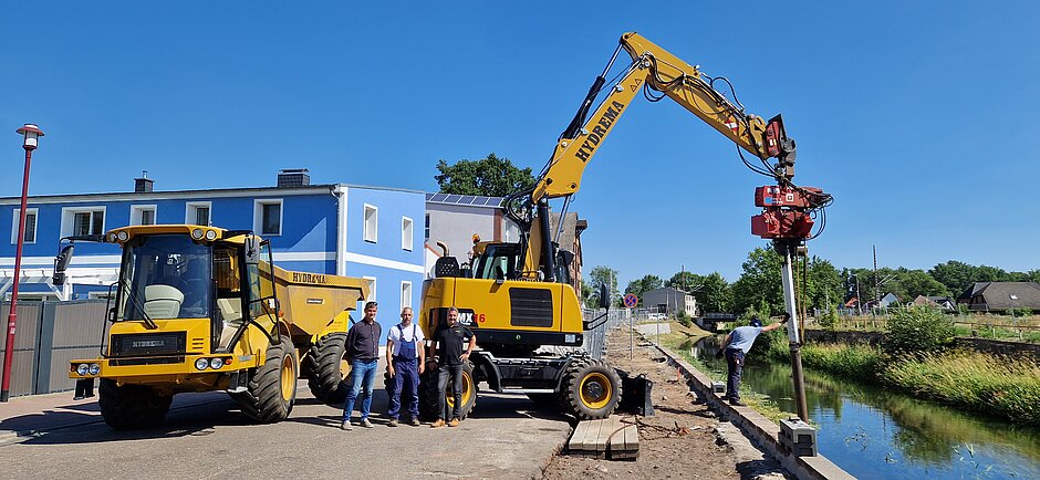 Die Begeisterung für Hydrema sei 2018 zunächst mit dem Dumper vom Typ 912FS entstanden. „Dieser Dumper ist für uns eine Alternative zu dem alten unverwüstlichen DDR-LKW, dem IFA - W50,–der mit breiten Reifen ausgestattet auch über Stock und Stein fuhr. Mit dem Dumper von Hydrema fahren wir Schlamm aus dem Ufer- oder Teichbau über unbefestigte Wege zu einer Sammelstelle. Mit der Drehmulde können wir auch an den beengten Sammelplätzen immer problemlos abkippen. Und tatsächlich hat uns der Dumper noch nie im Stich gelassen und hat das Material über noch so unwegsame Strecken problemlos mittransportiert“, erzählt Holger Roock, der auf diese Maschine nach eigenen Angaben nicht mehr verzichten möchte.