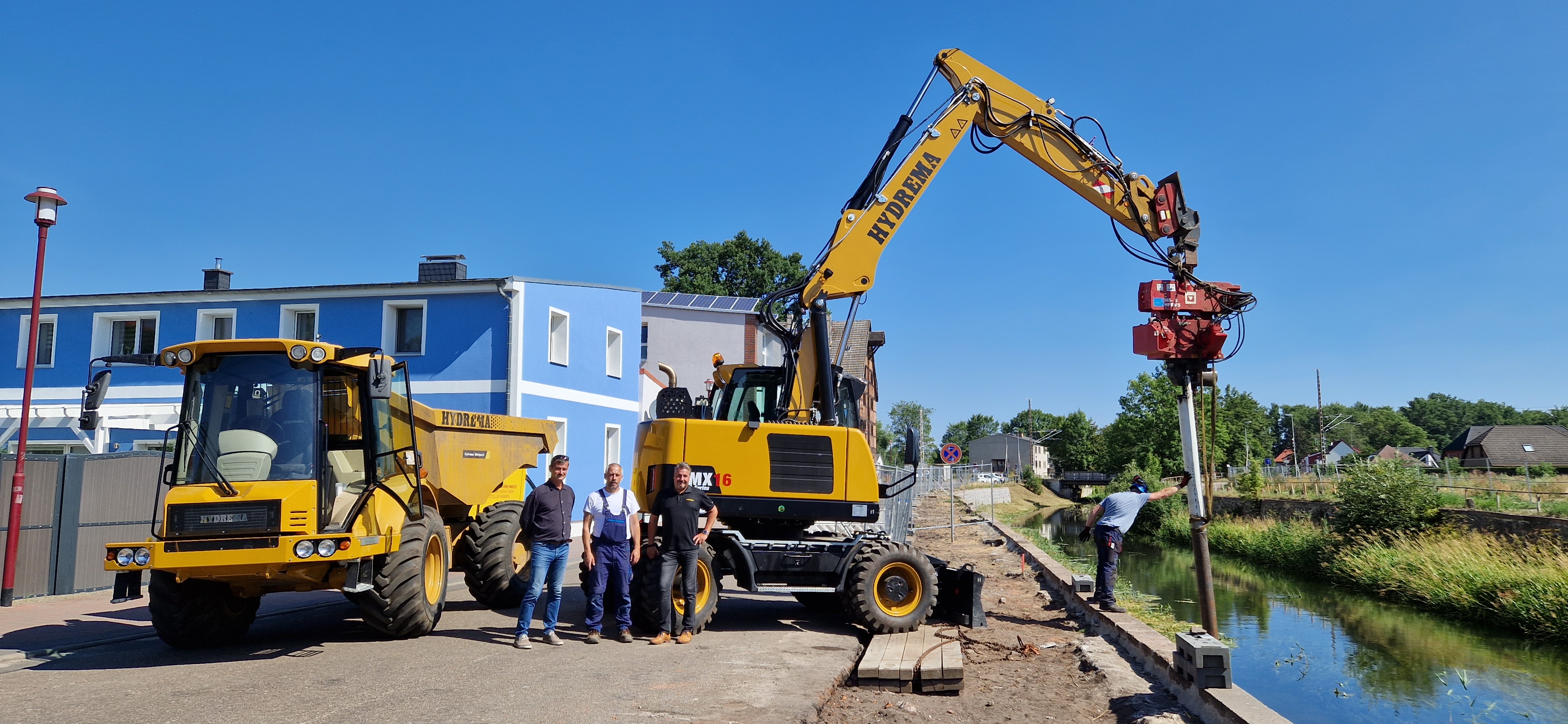 Sein Unternehmen ist im gesamten Osten Deutschlands tätig und auch an den Küsten und Wasserwegen von Schleswig-Holstein. Neben dem Wasserwegebau und dem Schleusen- und Stegbau, hat sich das Unternehmen seit mittlerweile 15 Jahren auch auf den Bau von Fußgängerbrücken ausgerichtet. Diese bis zu 90 Meter langen Brücken werden von Roock als Stahlbauteile selbst hergestellt und hauptsächlich über Wasser aufgebaut. So ist klar, dass Holger Roock mit seinem Unternehmen auch immer schwere Gewichte zu bewegen hat, weshalb bei der Anschaffung eines neuen Mobilbaggers auch der Hydrema MX-Citybagger in die engere Wahl gefallen ist. Im Vergleich möglicher Anbieter habe sich dann auch der Hydrema durchgesetzt. „Für uns war die enorme Hubkraft des Baggers zunächst das entscheidende Merkmal, allerdings hat der MX auch noch weitere Eigenschaften, die für uns sehr wichtig sind“, erzählt Roock in der nachträglichen Betrachtung seiner Entscheidung. „Wir arbeiten viel mit Rammen und Bohrer und die von uns eingesetzte Müller MS05 Ramme benötigt sehr viel hydraulische Kraft. Der Hydrema hat davon so viel, dass man die Maschine während des Rüttelns vollwertig manövrieren kann. Nicht nur das Bewegen des Arms, auch das Fahren der Maschine stellt somit während des Ramm-Betriebes kein Problem dar.“