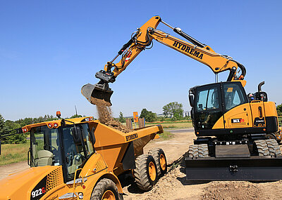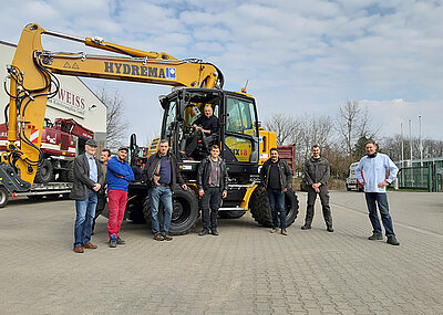 Entsprechend erfreut zeigt sich Hydrema-Vertriebsleiter Martin Werthenbach über die Innovation, denn gerade ein Hydrema sei »aufgrund seiner gewaltigen Kraft prädestiniert für entsprechende Einsätze. Unsere Armkinematik erlaubt das Arbeiten mit einem Mulcher bis unmittelbar an den Bagger heran, sodass zum Beispiel bei Bankett-Arbeiten der Bagger direkt an der Grasnarbe entlang fahren und der Mulcher trotzdem bis zur Grasnarbe arbeiten kann, wodurch das ohnehin kurze Heck der Maschine voll ausgenutzt wird und der vorbeifahrende Verkehr vollkommen ungehindert den Einsatzbereich der Maschine passieren kann.« Vergleichbare Maschinen, die das notwendige Öl für den Mulcher bei gleichzeitig fließenden Baggerbewegungen liefern können, wären hingegen gezwungen, mit entsprechendem Abstand zur Grasnarbe zu fahren. Dadurch entstünden, so Werthenbach, Einschränkungen für den vorbeifahrenden Verkehr.