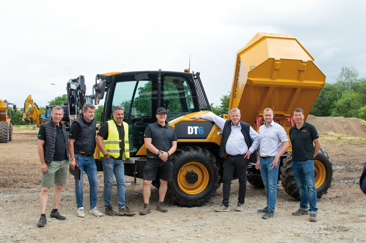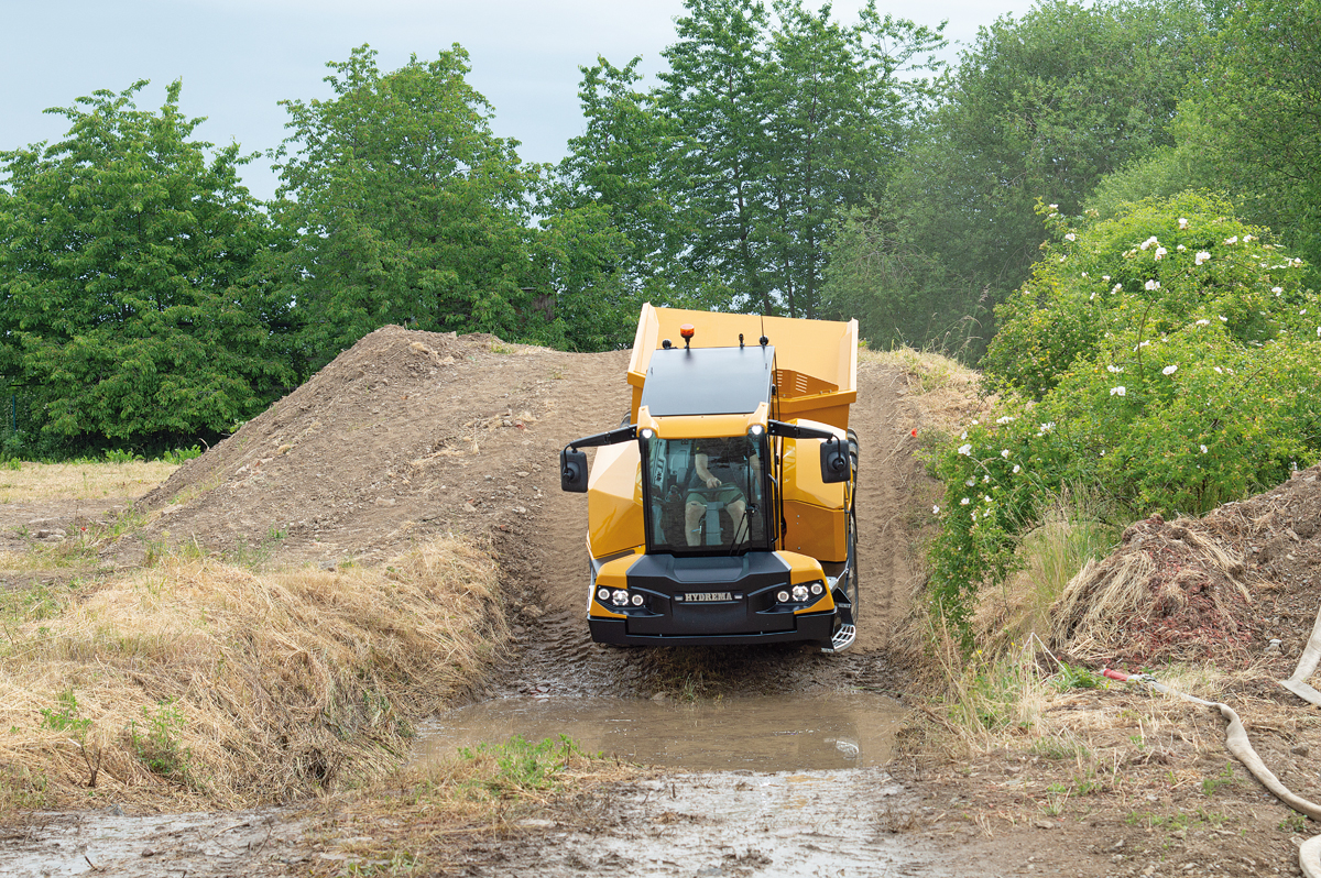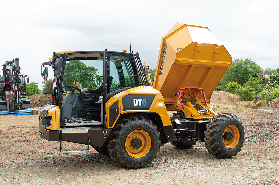 Zu den Vorzügen der Hydrema-Dumper zählen laut Martin Werthenbach insbesondere die Alleinstellungsmerkmale: »Der 912GS ist zum Beispiel der einzige Dumper, der seine volle Nutzlast von 10 t auf der Straße fahren darf – und der 922er darf leer uneingeschränkt unterwegs sein. Zudem ist der 707G der einzige Dumper seiner Klasse, der als vollwertiger Muldenkipper mit Kabine in Fahrtrichtung und der Mulde im Rücken gebaut ist. Und dabei handelt es sich nicht etwa um eine umgebaute Baustellenkippervariante mit umgedrehter Kabine oder einem integrierten Drehsitz, sondern um einen voll geländegängigen Muldenkipper mit niedrigem Schwerpunkt und zentralem Knickgelenk. Und auch der DT6 verfügt serienmäßig über die Drehmulde mit Autobody-Return-Funktion.« Der Fahrer, so Werthenbach weiter, blicke dabei in Fahrtrichtung und die Mulde senke sich automatisch von der seitlich ausgekippten Position wieder zurück in die Ausgangslage. d