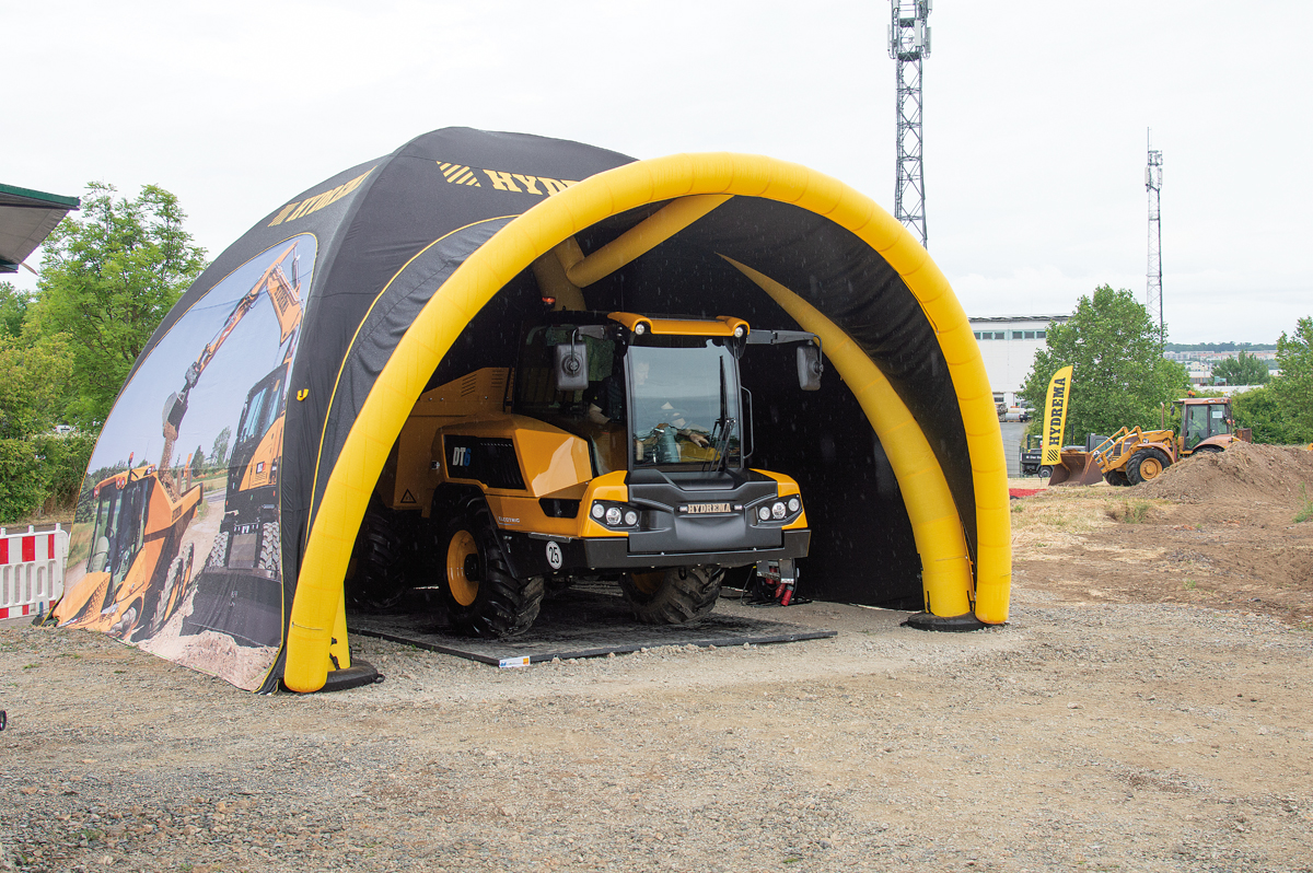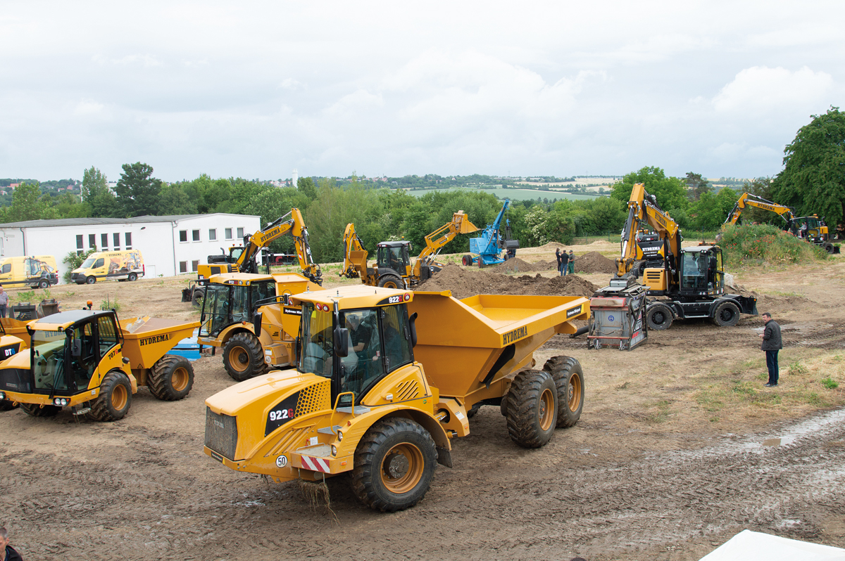 In Weimar, unweit der Hydrema-Produktion, durften die Besucher eine Vielzahl an Maschinen ausgiebig testen: Neben dem elektrisch betriebenen Dumper DT6 zählten auch die Dumper-Baureihen 912 und 922 sowie mehrere MX-Citybagger samt verschiedener Anbaugeräte dazu.