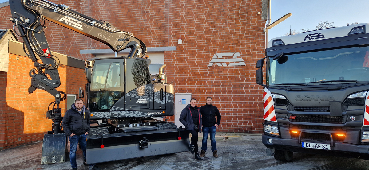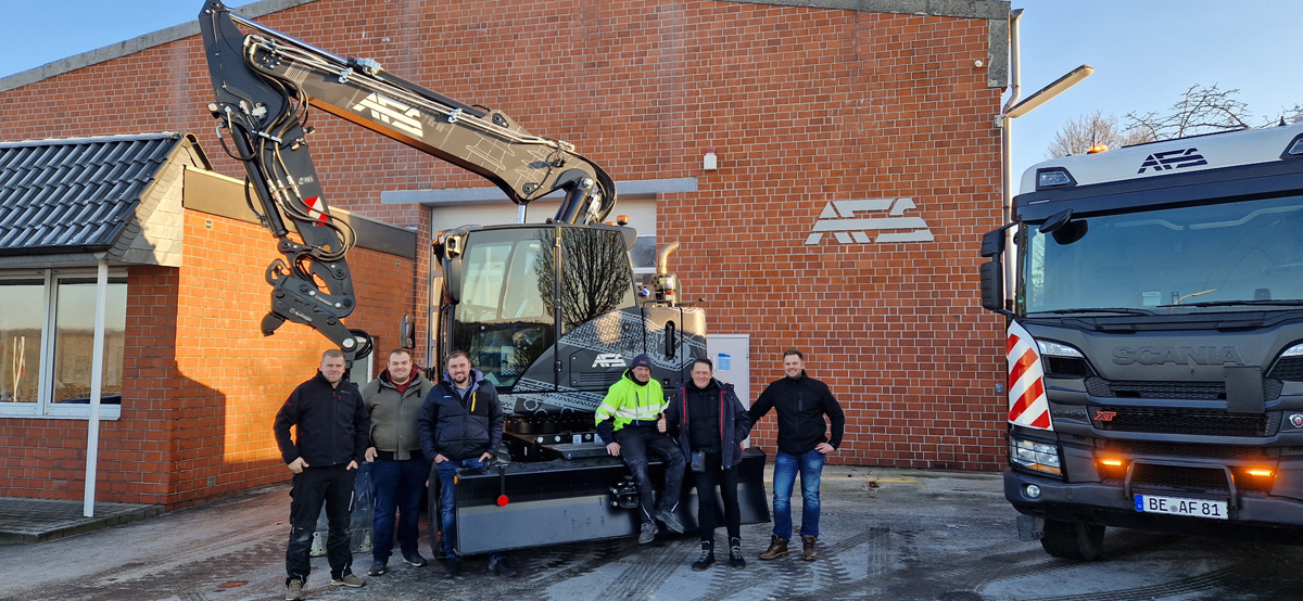 Bei der Netzversorgung geht es für die AFS um Strom, mit der kompletten Bandbreite an Kabelgarnituren-Montagen von 1KV bis zum 110KV Hochspannungsbereich. Bei der Fernmeldetechnik stehen Kupfer- sowie LWL-Glasfaser-Montage im Fokus, aber auch der Freileitungsbau, der Kabelleitungstiefbau sowie entsprechende Prüf- und Messtechniken gehören zum Dienstleistungsprogramm. Dabei sind längst nicht nur der private Haushalt zu sehen, sondern vor allem auch Großprojekte, wie zum Beispiel die zunehmende Windpark-Netzanbindung. Kein Wunder also, dass das Unternehmen jetzt nicht mehr, wie zu den Anfangszeiten, nur auf Mini- und Kompaktbagger setzen kann, sondern jetzt auch einen eigenen großen Bagger benötigt. Zu den Auftraggebern gehören die Telekom, e-on, RWE zahlreiche Stadtwerke – Betriebe und große Bauunternehmen.